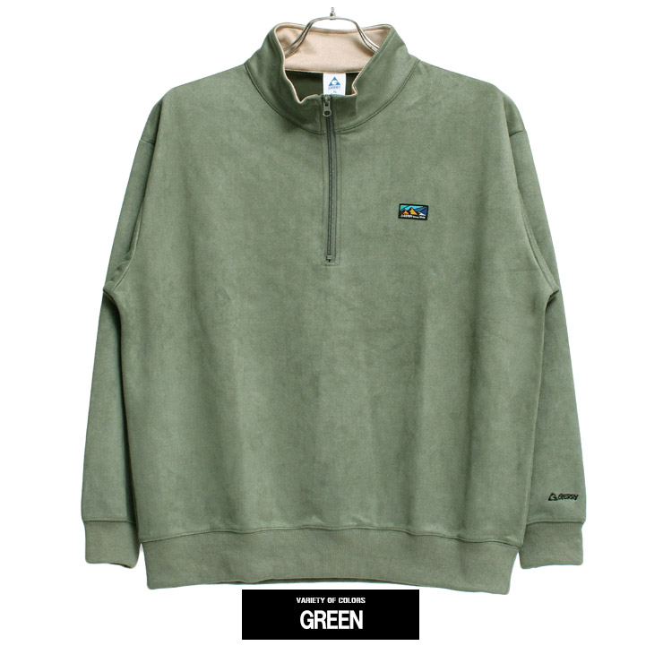 アウトドアブランドGERRYのアクティブなシーンでも活躍してくれる上質なカットスウェードを使用したロゴプリントハーフジップスウェットトレーナーの登場です。