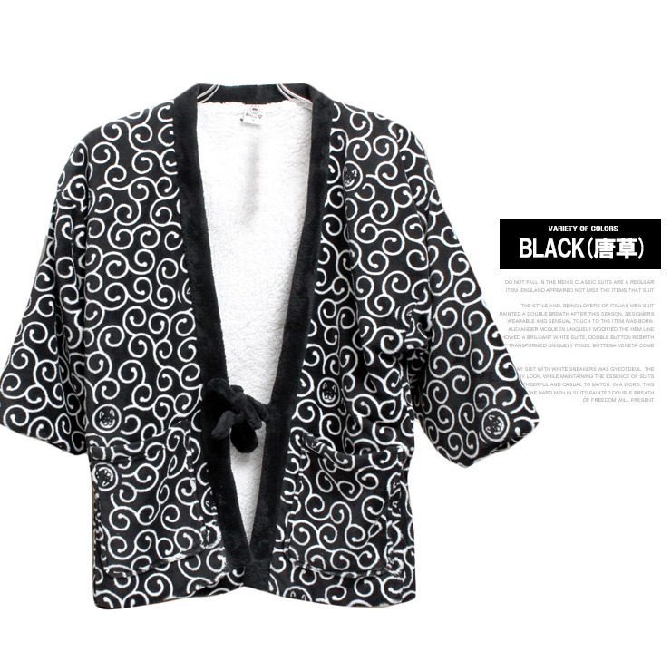 唐草模様のあったか裏ボア入り半纏(はんてん)です。