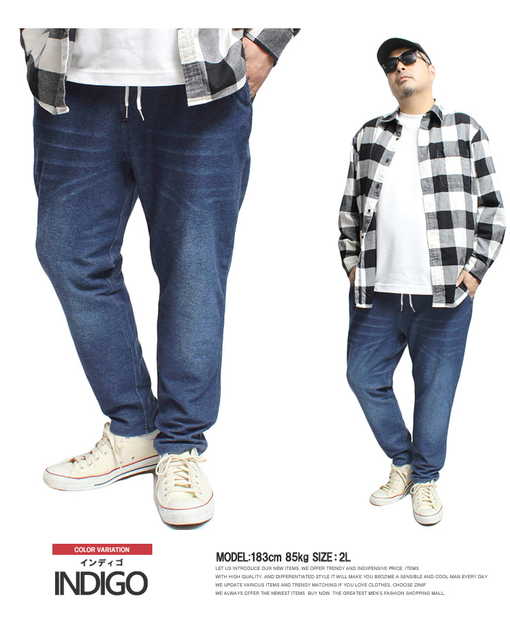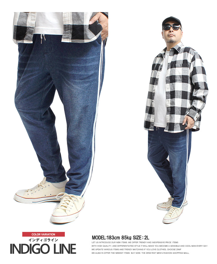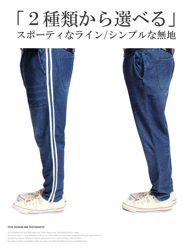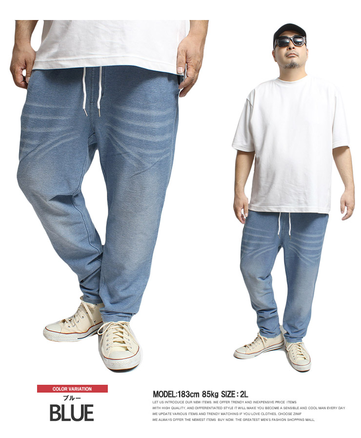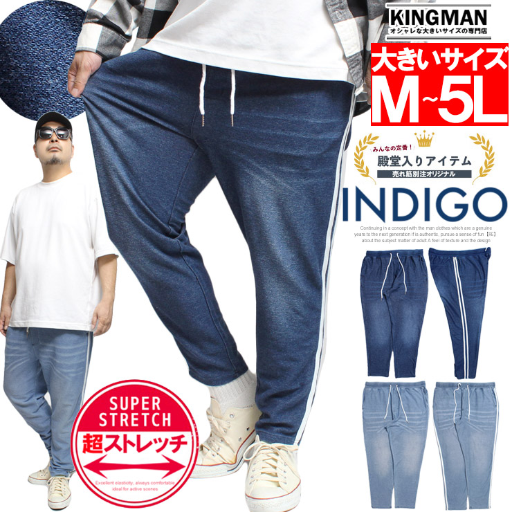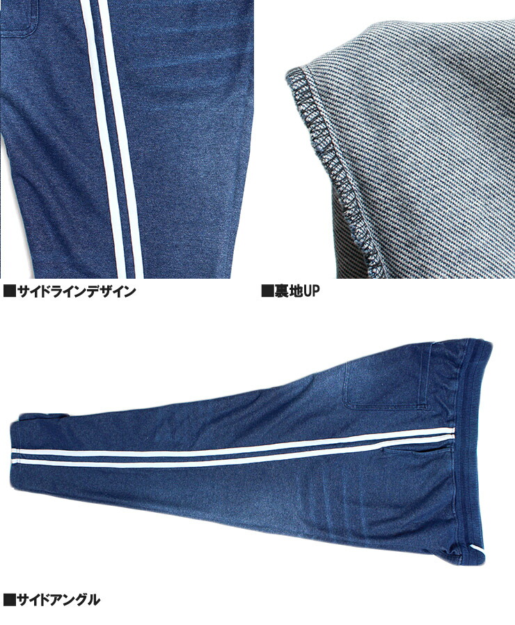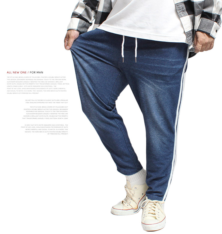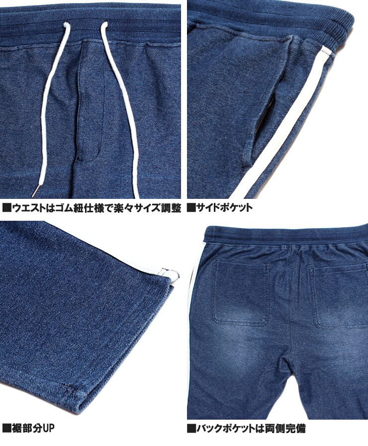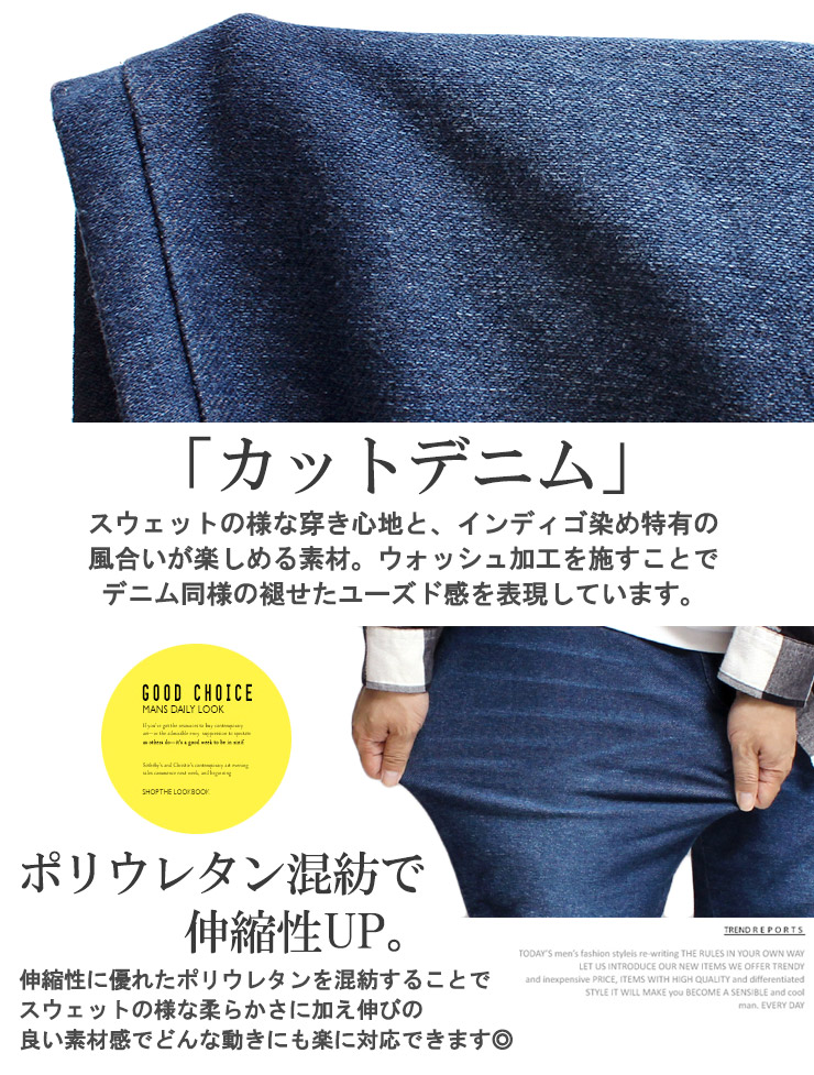 【大きいサイズ】カットデニム スウェットパンツ メンズ 大きいサイズ サイドライン ストレッチ ウエストゴム イージーパンツ イージーパンツ デニムパンツ スウェットパンツ●