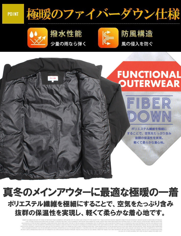 【大きいサイズ】コンバース(CONVERSE) 中綿 ダウンジャケット メンズ 大きいサイズ 防風 撥水加工 ストレッチ スタンド ブルゾン アウター 防寒 暖かい あったか アウトドア☆