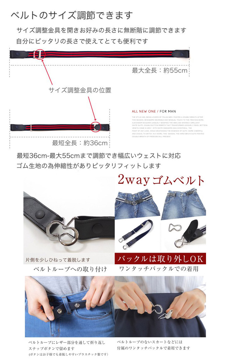 【大きいサイズ】ベルトループのないパンツにも対応できる 2WAY ゴムベルト メンズ 日本製 国産 レディース 男女兼用 ゴム 伸縮 ストレッチ