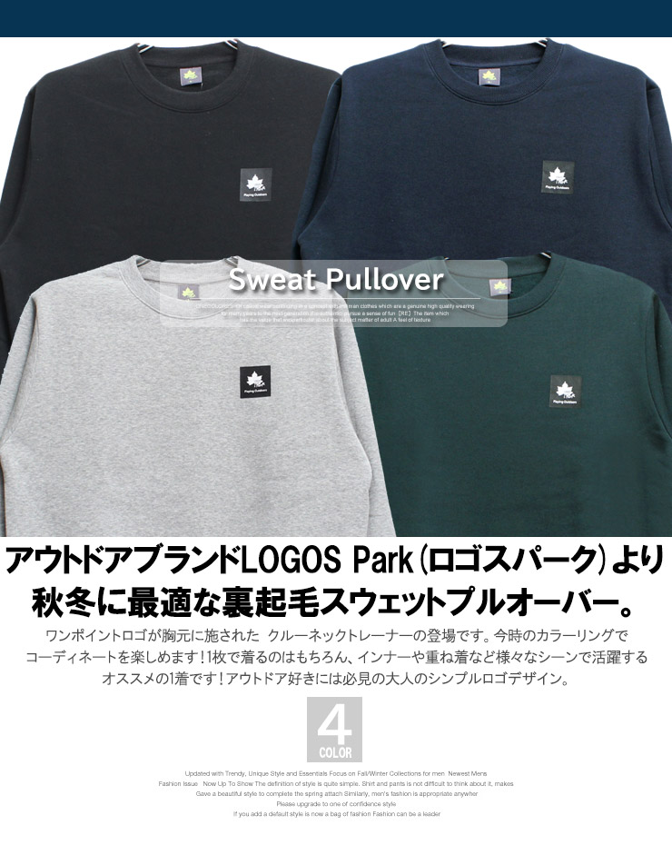 【大きいサイズ】LOGOS PARK(ロゴス パーク) スウェット メンズ 大きいサイズ 裏起毛 刺繍 ロゴ プリント クルーネック トレーナー トップス スエット アウトドア ブランド〇