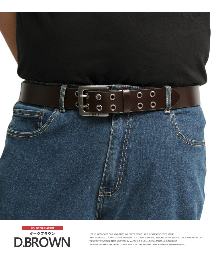 【大きいサイズ】EDWIN(エドウィン) レザー ベルト 大きいサイズ メンズ 本革 スーパーロング ダブルピン バックル レザーベルト 牛革 ベルト レザー 無地