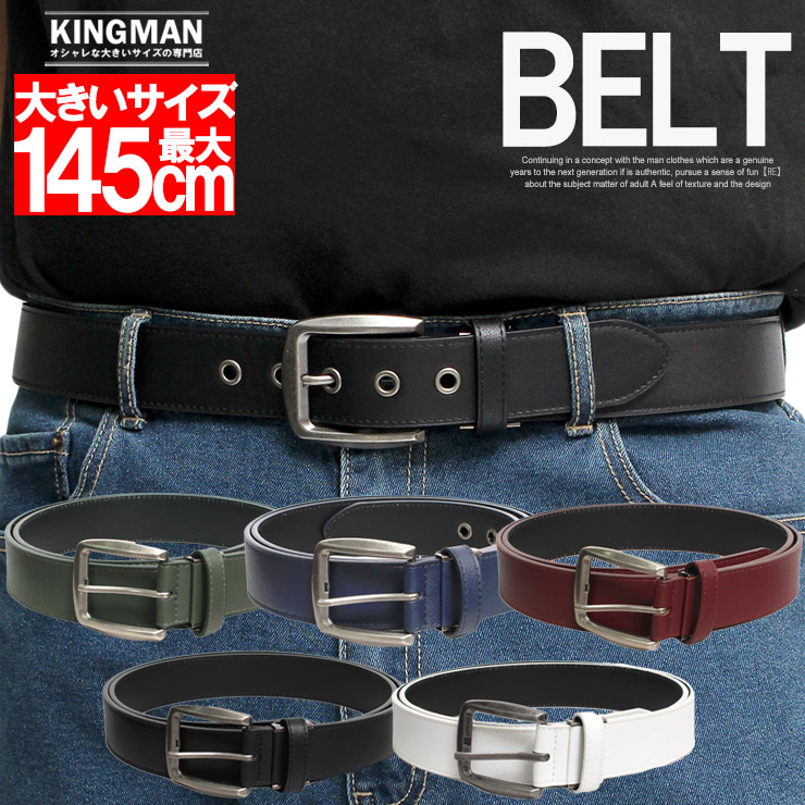 【大きいサイズ】PUレザー ベルト 大きいサイズ メンズ ハトメ ピンバックル シンプル 合成皮革 ロングベルト 合皮 レザーベルト 無地 カジュアルベルト 黒 茶