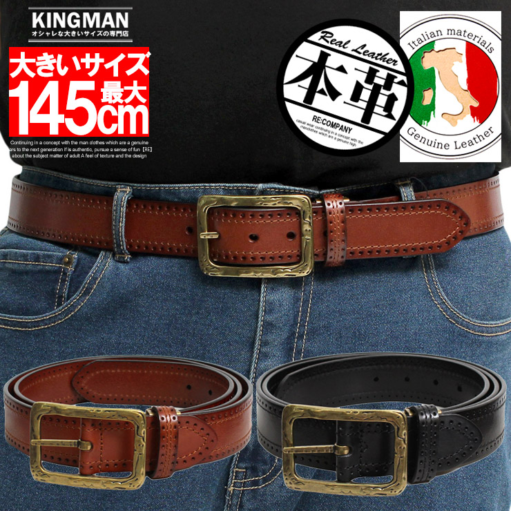 【大きいサイズ】イタリアンレザー ベルト 大きいサイズ メンズ パンチング ピンバックル 本革 レザーベルト 牛革 ベルト レザー 無地 カジュアルベルト 黒 茶 定番