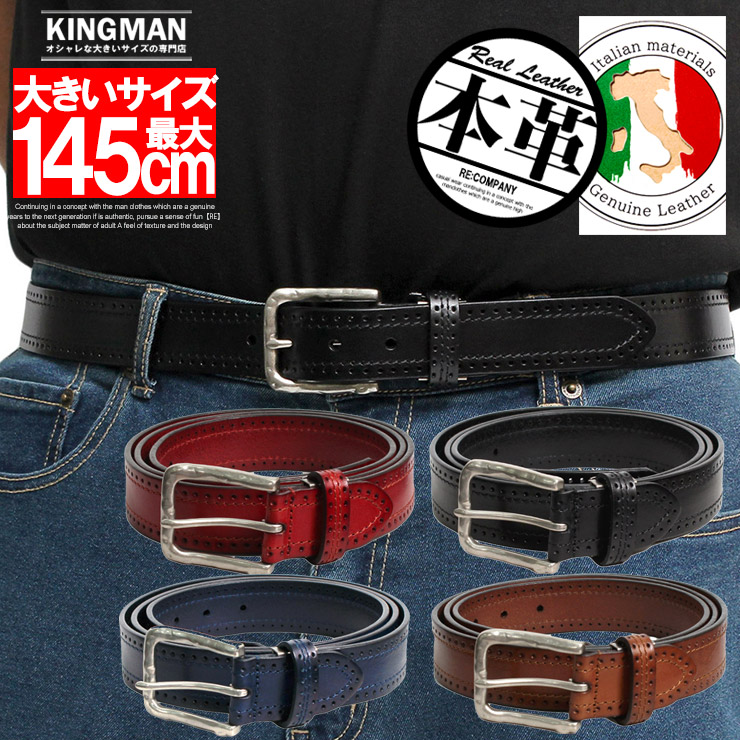 【大きいサイズ】イタリアンレザー ベルト 大きいサイズ メンズ 本革 パンチング ピンバックル レザーベルト 牛革 ベルト レザー 無地 カジュアルベルト 黒 茶 定番