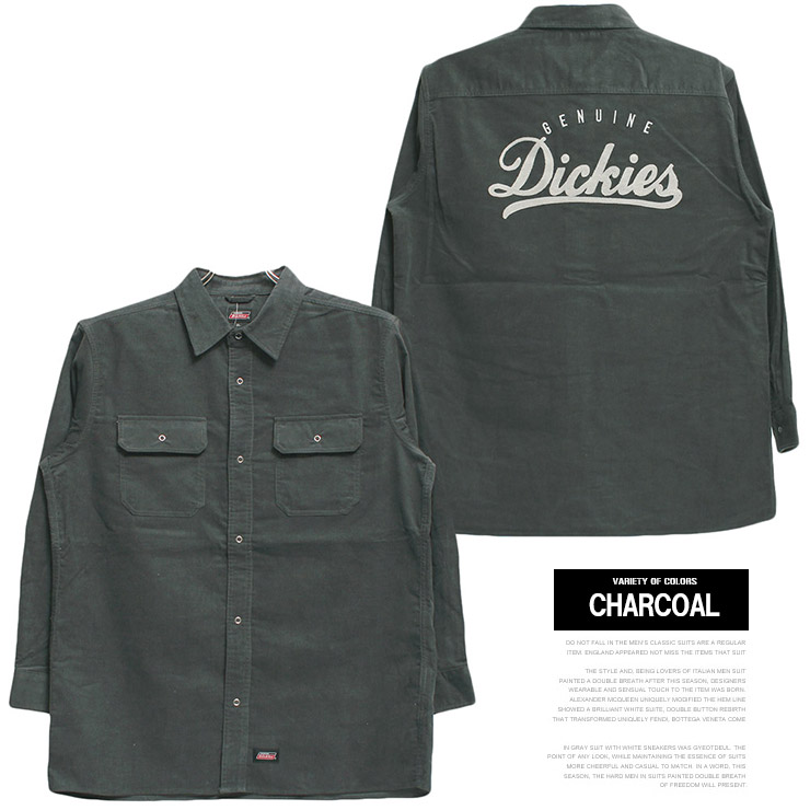 【大きいサイズ】ジェニュイン ディッキーズ(GENUINE DICKIES) コーデュロイシャツ メンズ 大きいサイズ バック ロゴ 刺繍 プリント 長袖 ワークシャツ コールテンシャツ〇