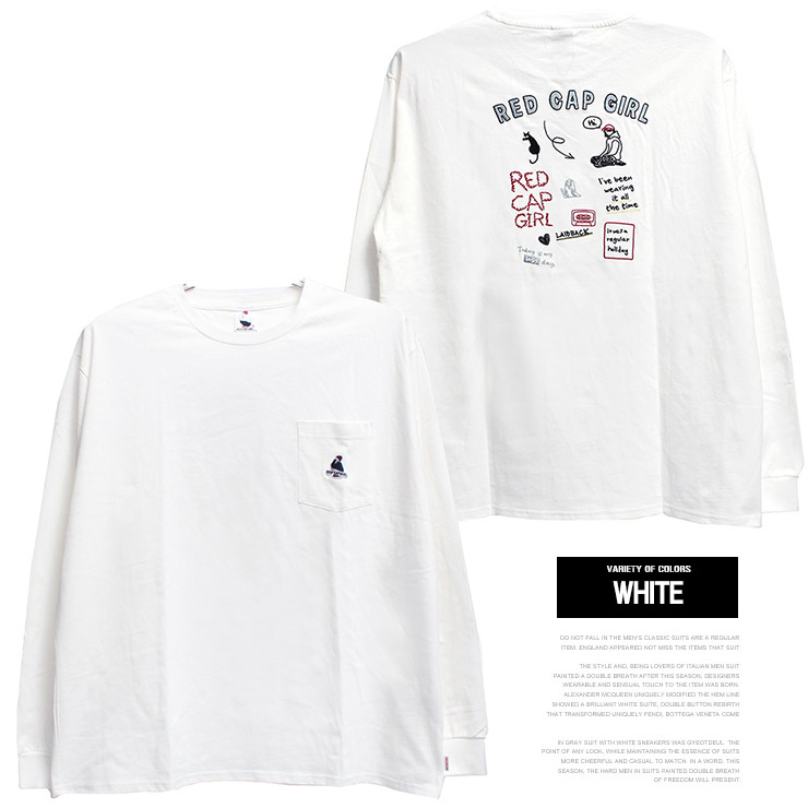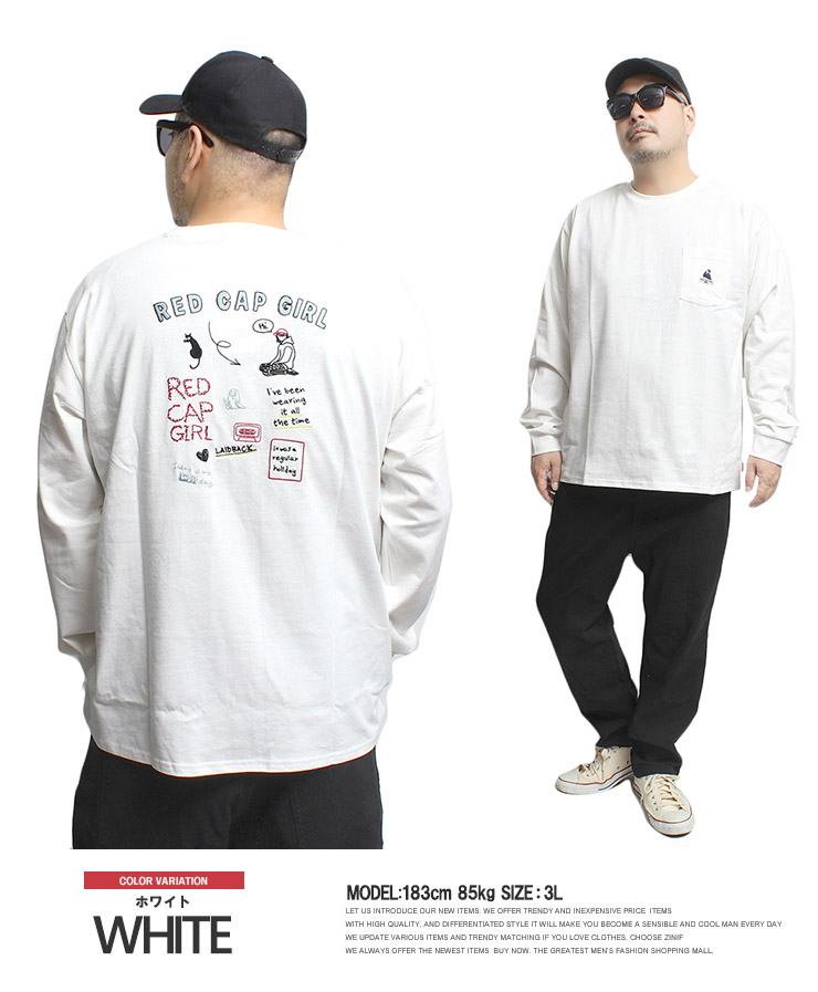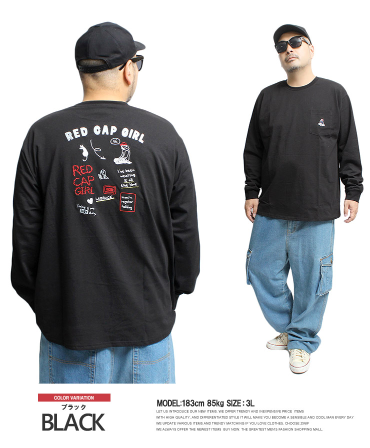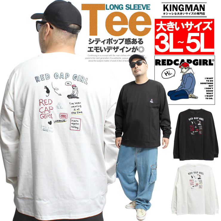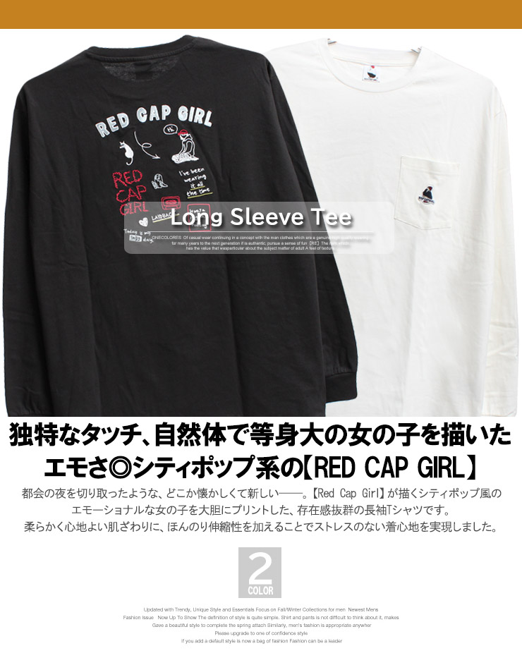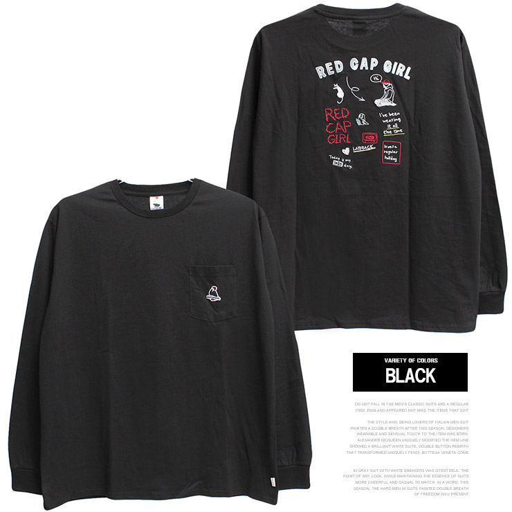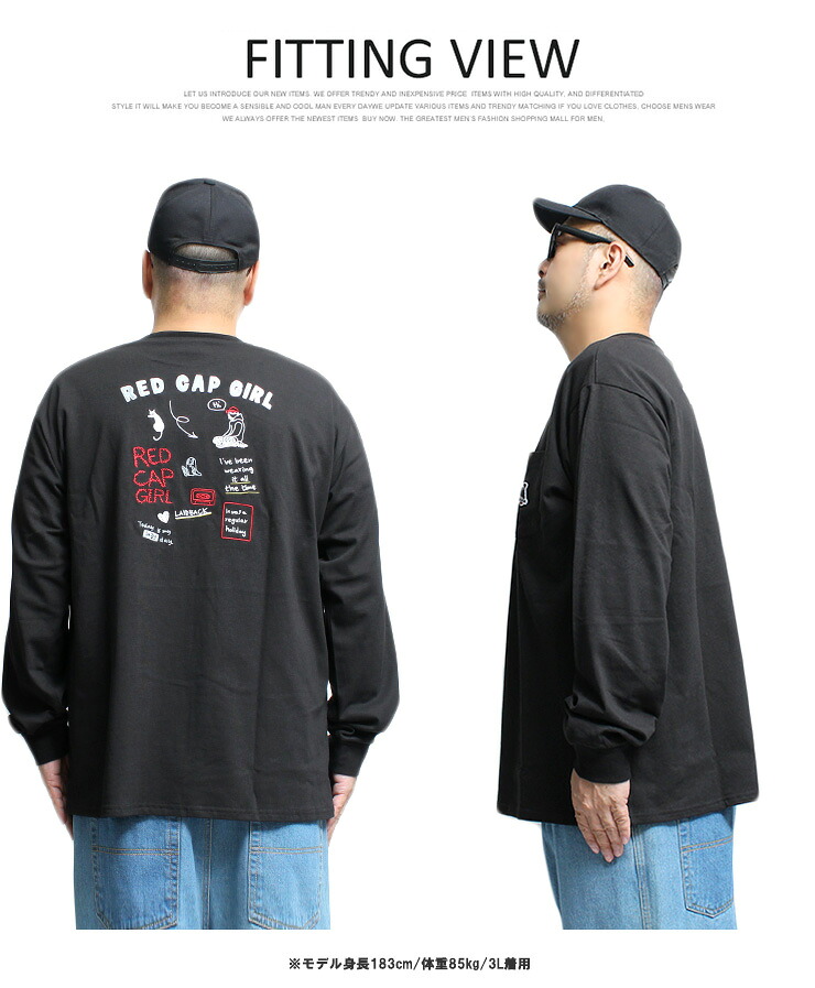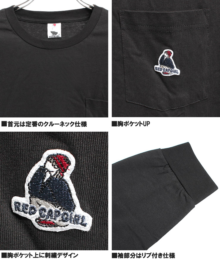 【大きいサイズ】RED CAP GIRL(レッドキャップガール) 長袖 Tシャツ メンズ 大きいサイズ 胸ポケット バック 刺繍 プリント クルーネック カットソー トップス イラスト〇