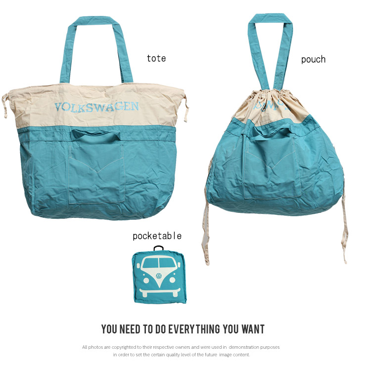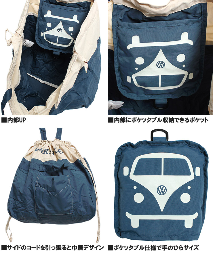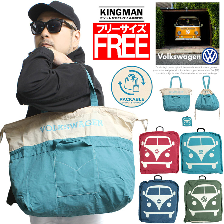 【大きいサイズ】フォルクスワーゲン(volkswagen) ポケッタブル トートバッグ タイプ2 プリント ナイロン ラージ エコバッグ メンズ レディース 収納 パッカブル
