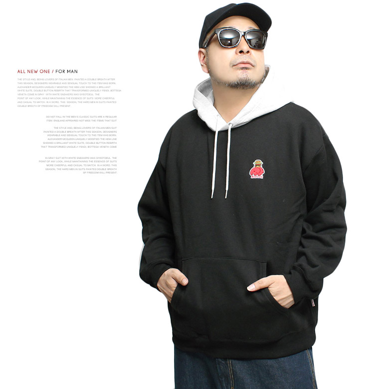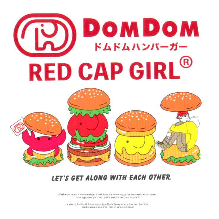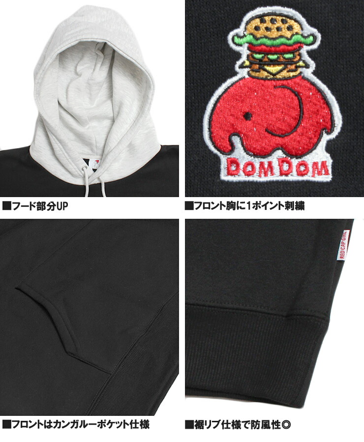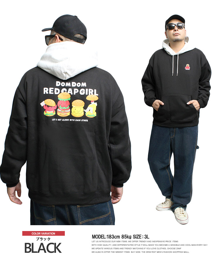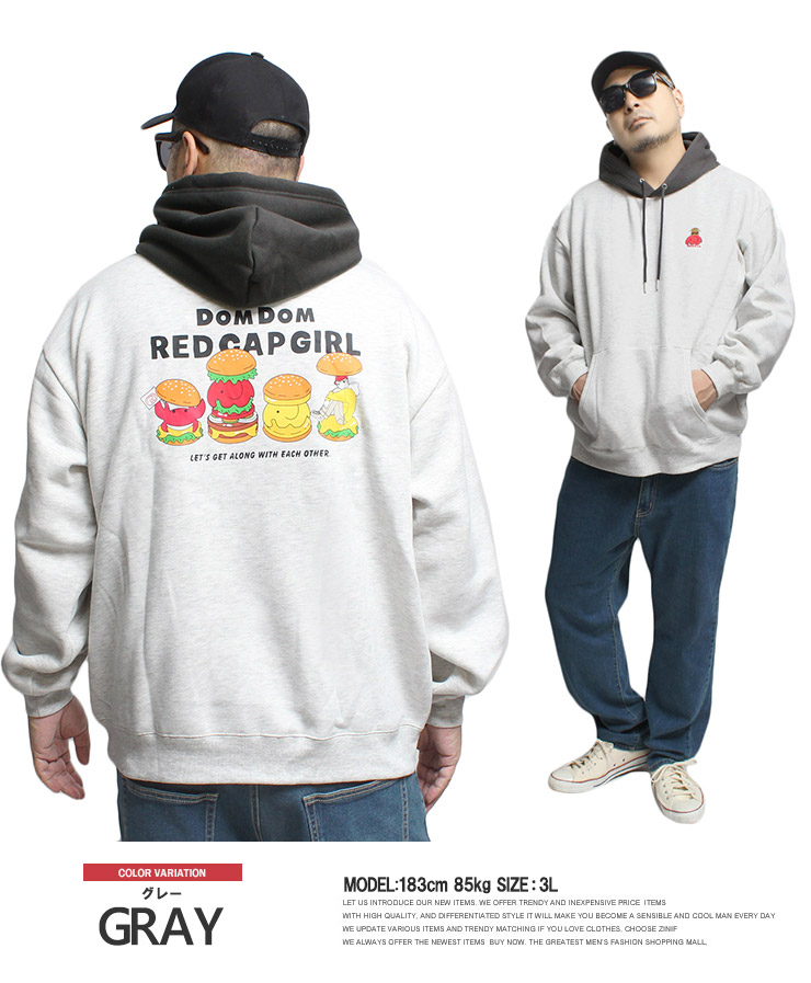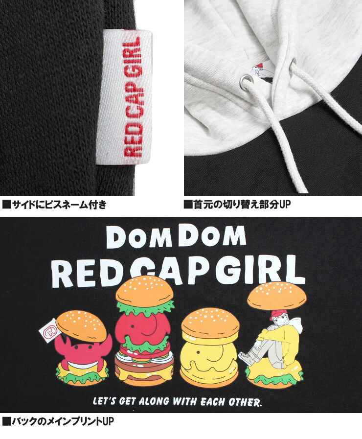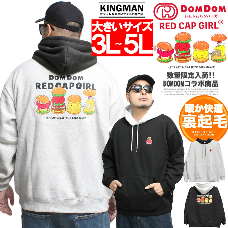 【大きいサイズ】RED CAP GIRL(レッドキャップガール) DOMDOM ハンバーガー パーカー メンズ 大きいサイズ 裏起毛 配色 プルオーバー コラボ スウェット ドムドム〇