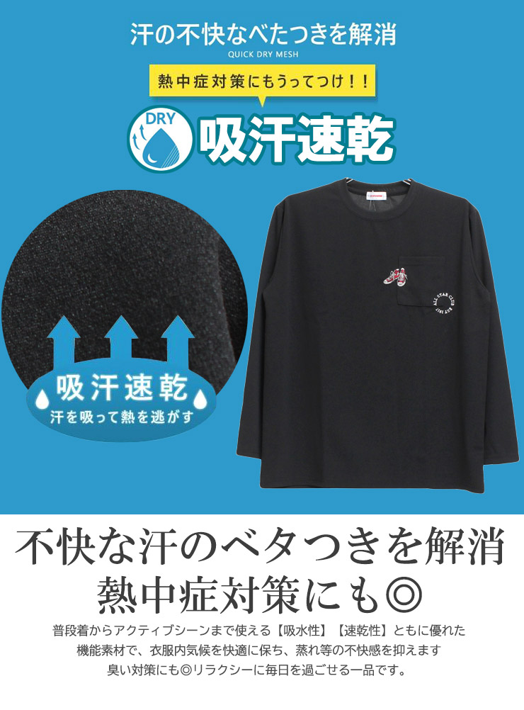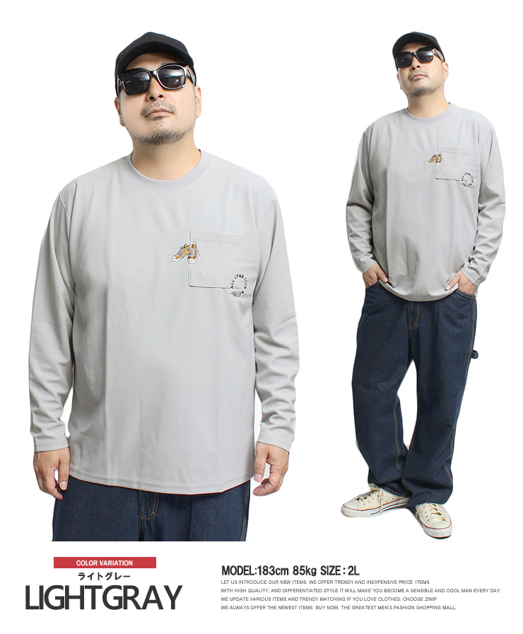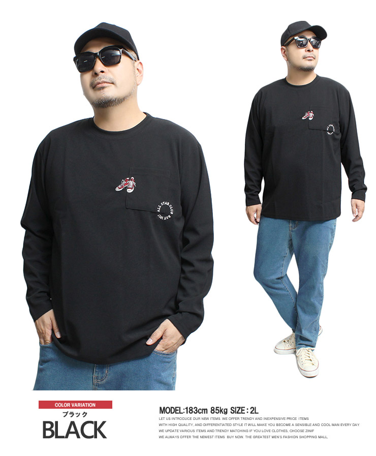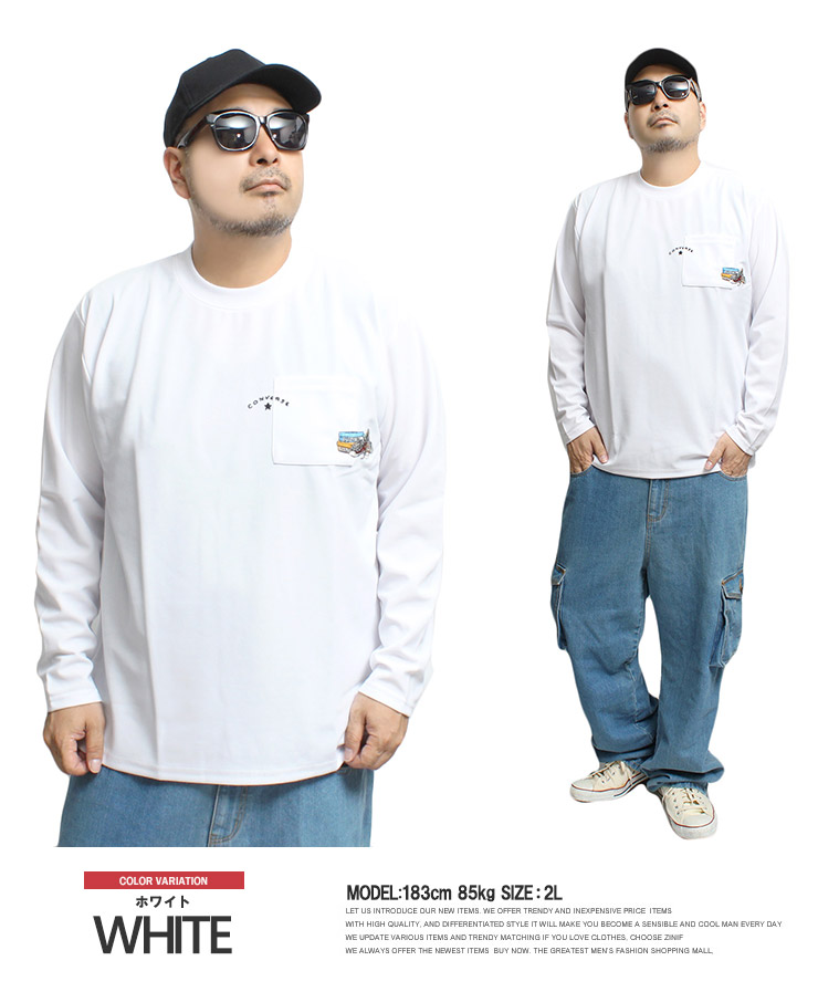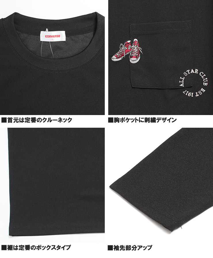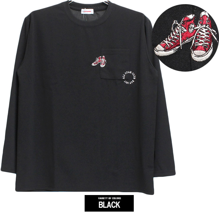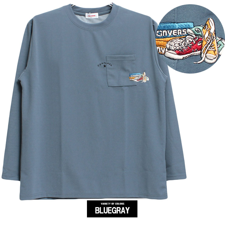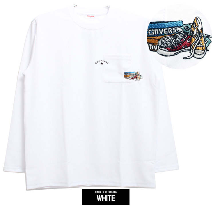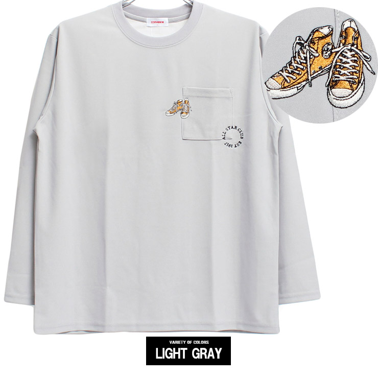 【大きいサイズ】コンバース(CONVERSE) 長袖Tシャツ メンズ 大きいサイズ 接触冷感 吸汗速乾 シューズ 刺繍 プリント クルーネック カットソー ポケット付き〇