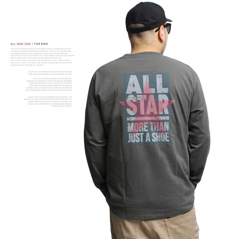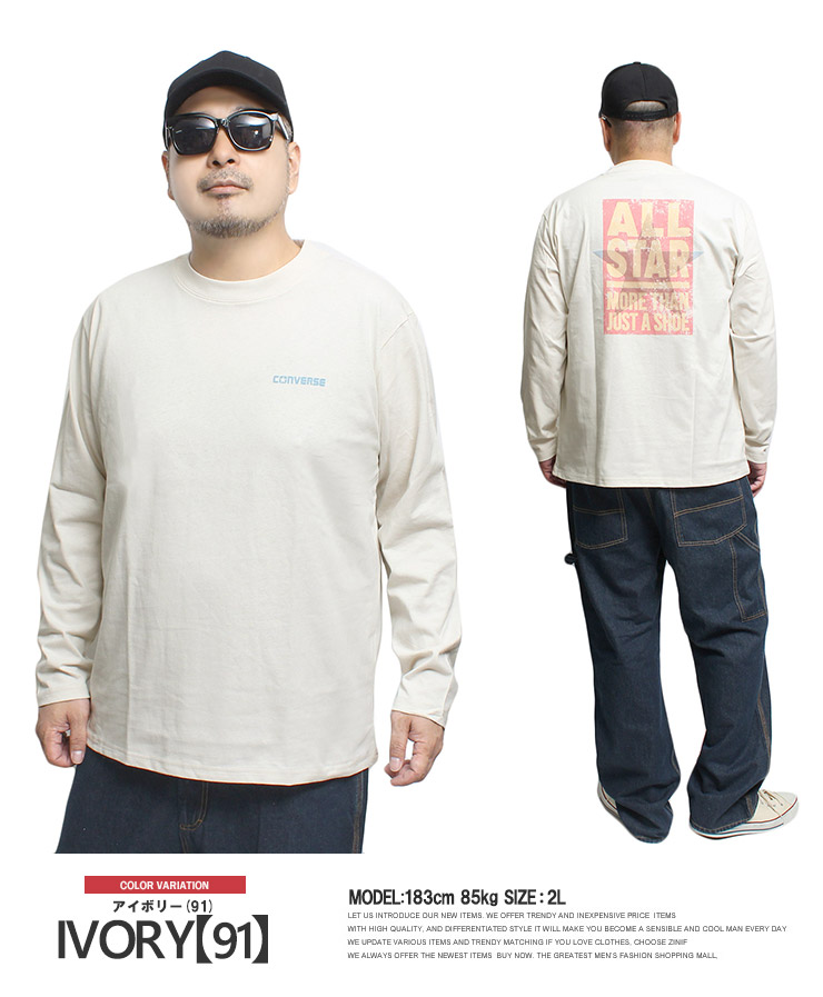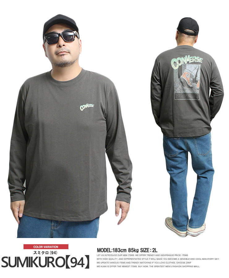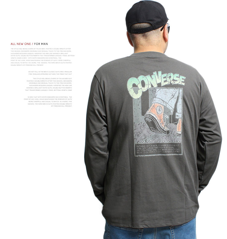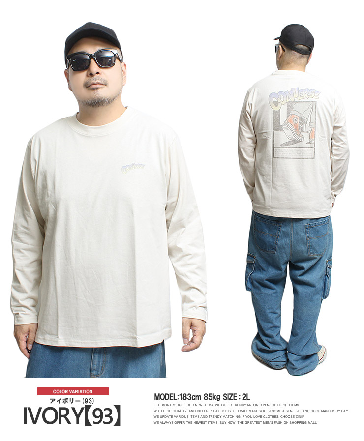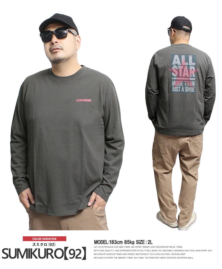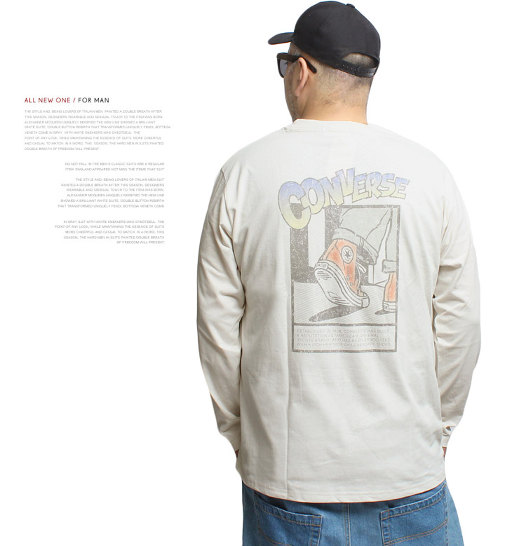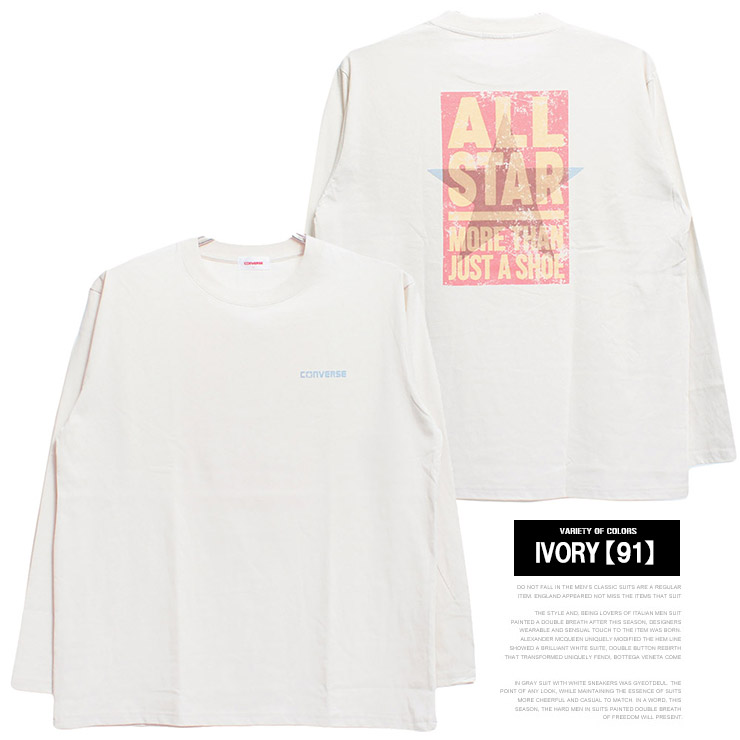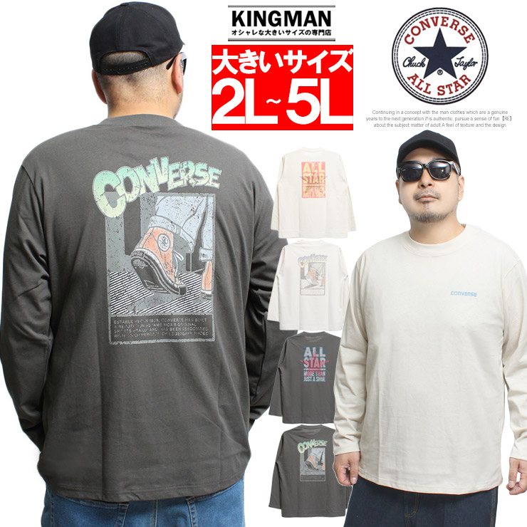 【大きいサイズ】コンバース(CONVERSE) 長袖Tシャツ メンズ 大きいサイズ ピグメント風 ロゴ プリント クルーネック カットソー 古着風 ヴィンテージ加工 オールスター〇