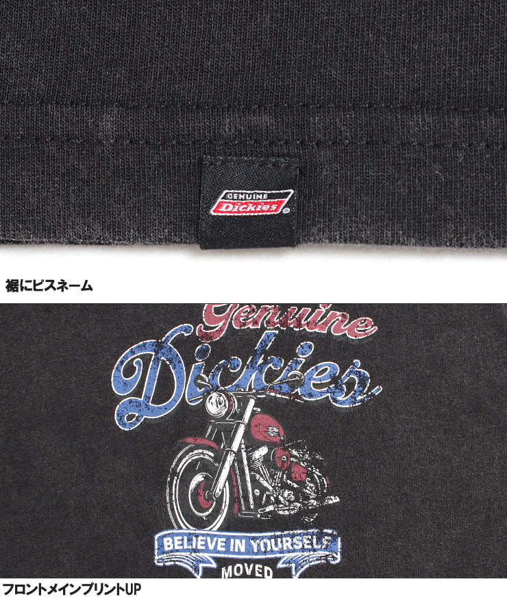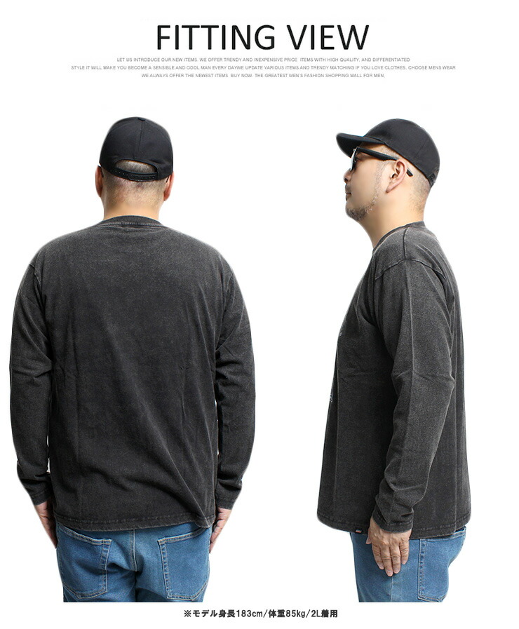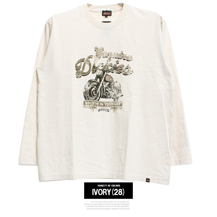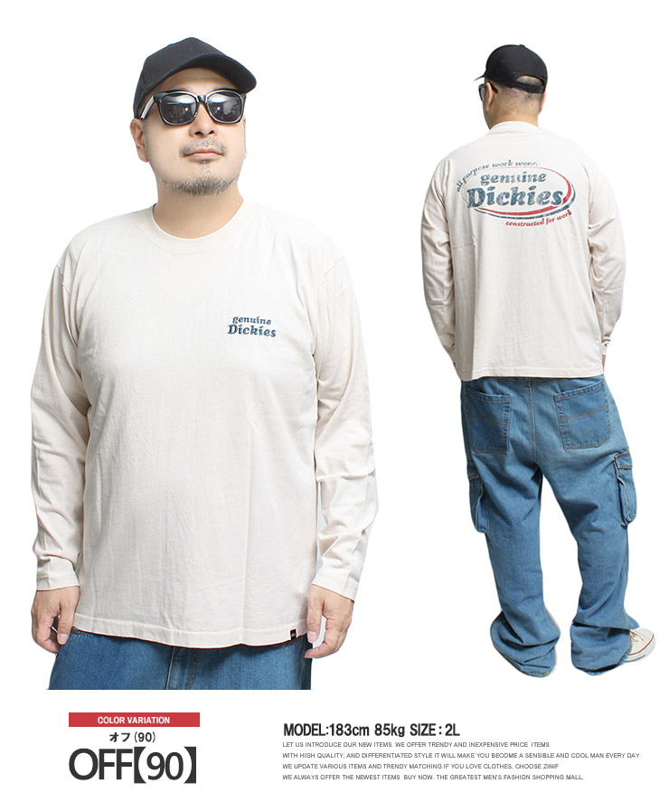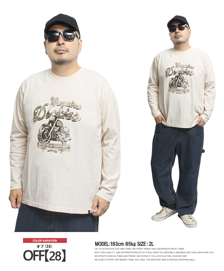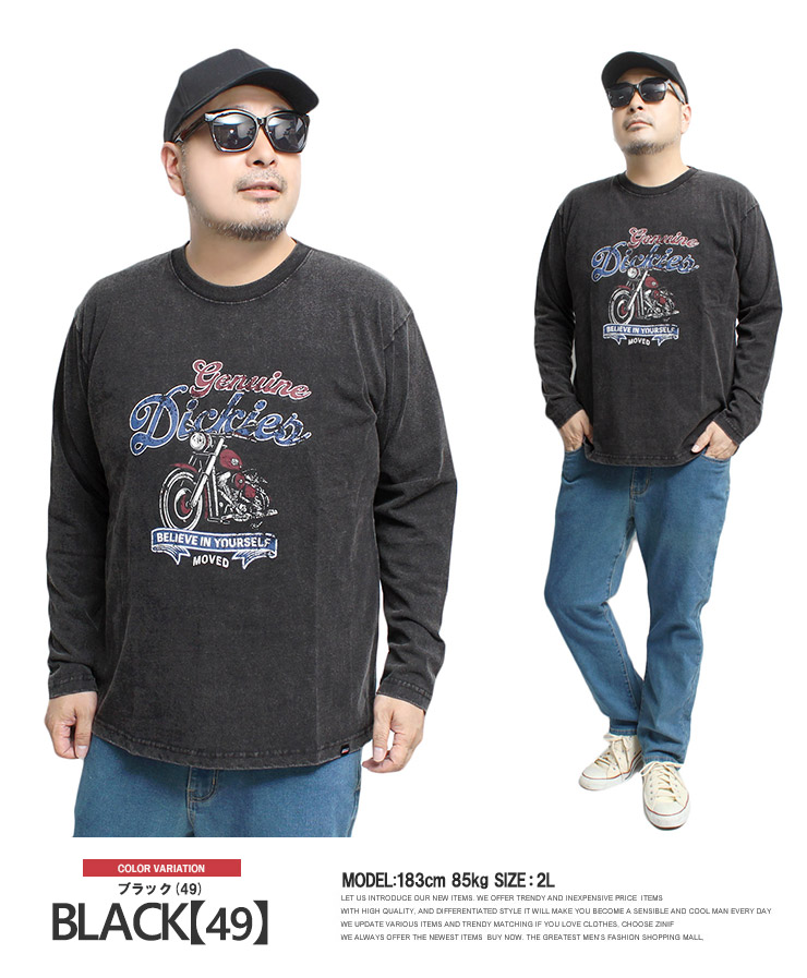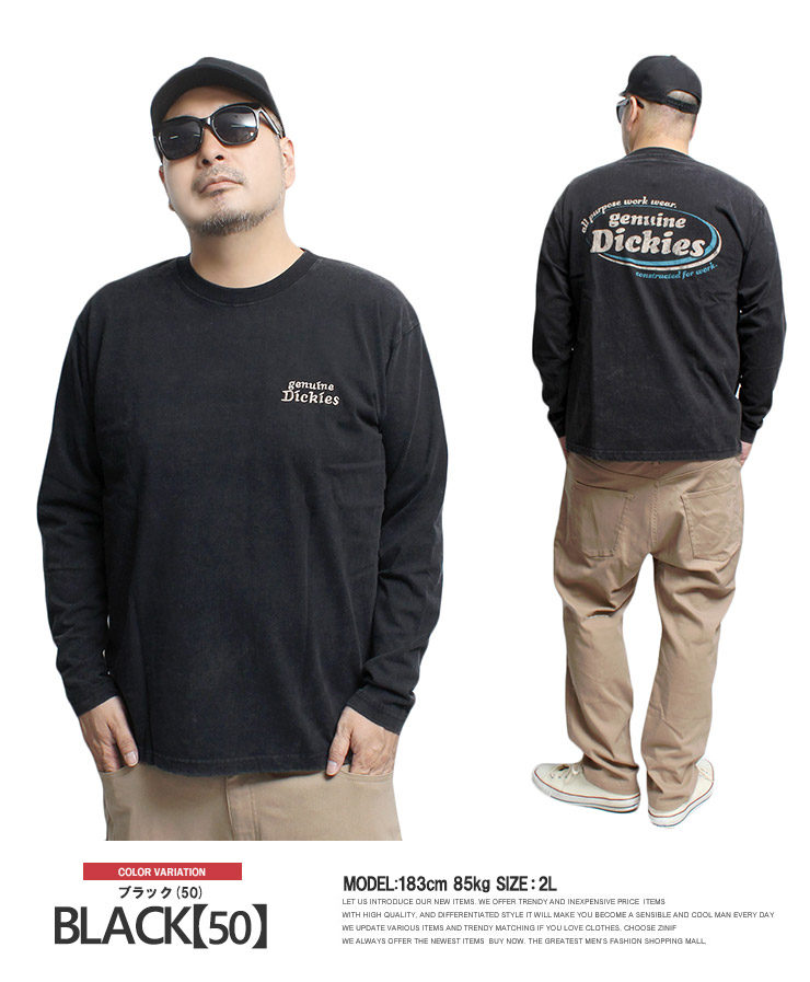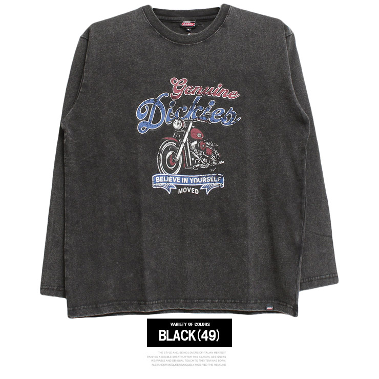 【大きいサイズ】ジェニュイン ディッキーズ(GENUINE Dickies) 長袖Tシャツ メンズ 大きいサイズ パウダーブリーチ加工 プリント クルーネック カットソー 長袖 Tシャツ〇