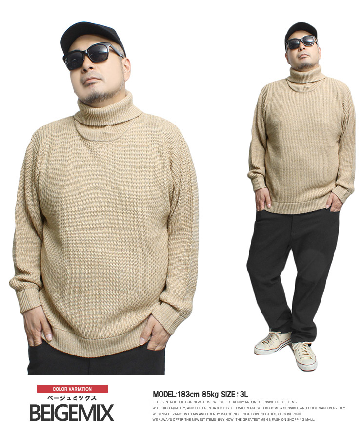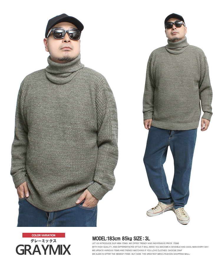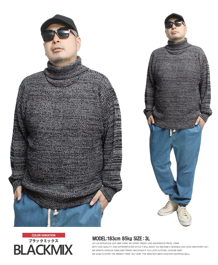 【大きいサイズ】タートルネック ニット メンズ 大きいサイズ 厚手 杢調 天竺編み 防寒 セーター 保温 暖かい トップス シンプル ハイネック あったか ビジネス ゴルフウェア〇