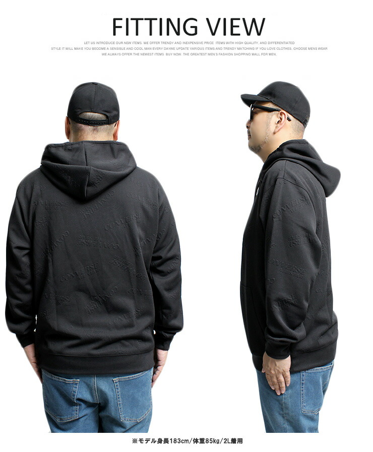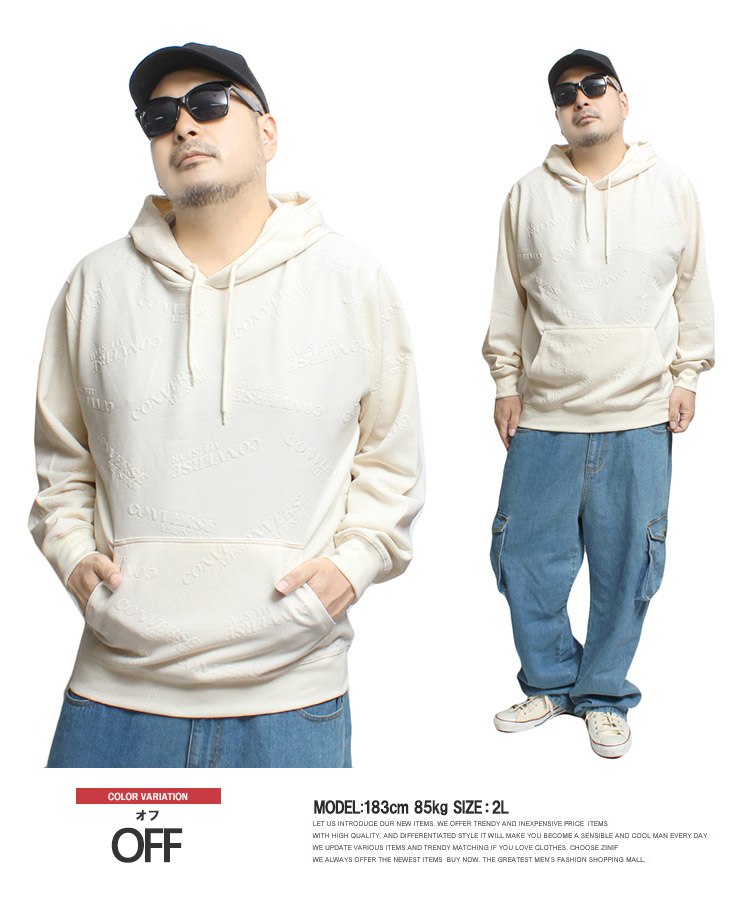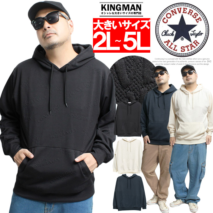【大きいサイズ】コンバース(CONVERSE) パーカー メンズ 大きいサイズ ふくれ ジャガード ロゴ プルオーバー スウェット トップス スエット プルパーカー ブランド〇