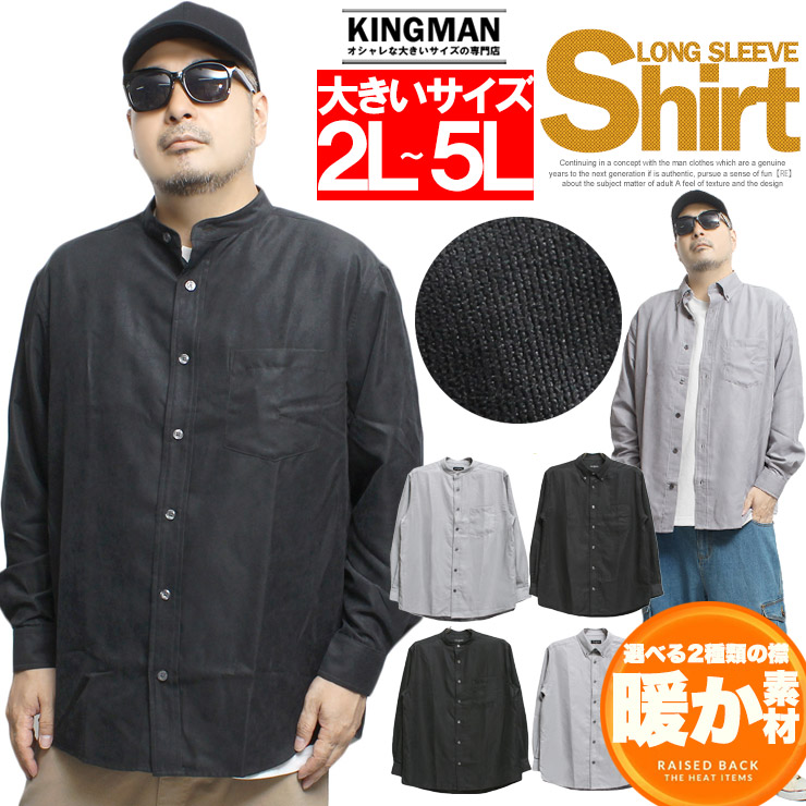 【大きいサイズ】長袖シャツ メンズ 大きいサイズ ピーチ起毛 バンドカラー ボタンダウン 微起毛 起毛シャツ ネルシャツ トップス 防寒 あったか ポケット付き カジュアルシャツ〇