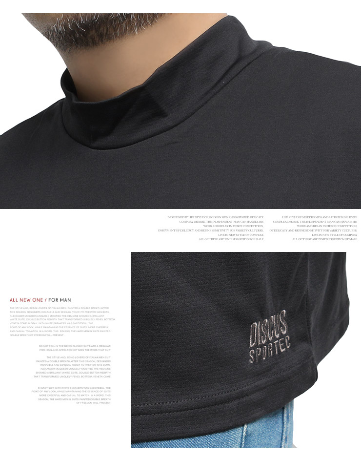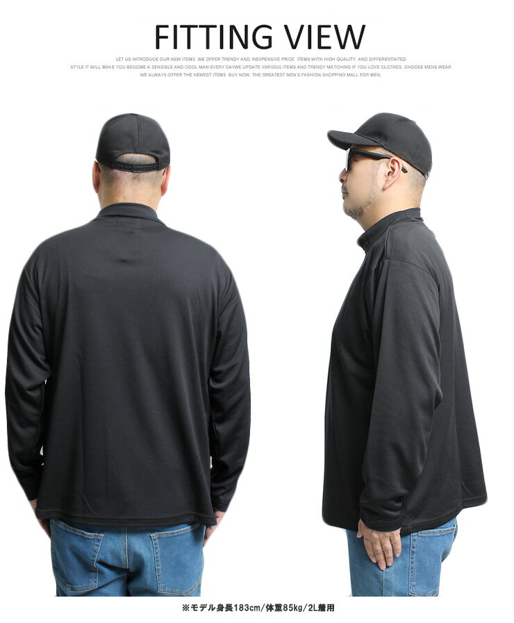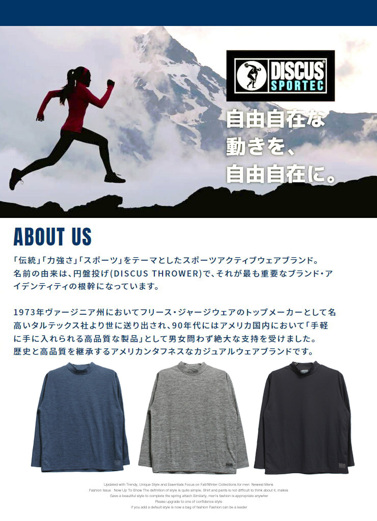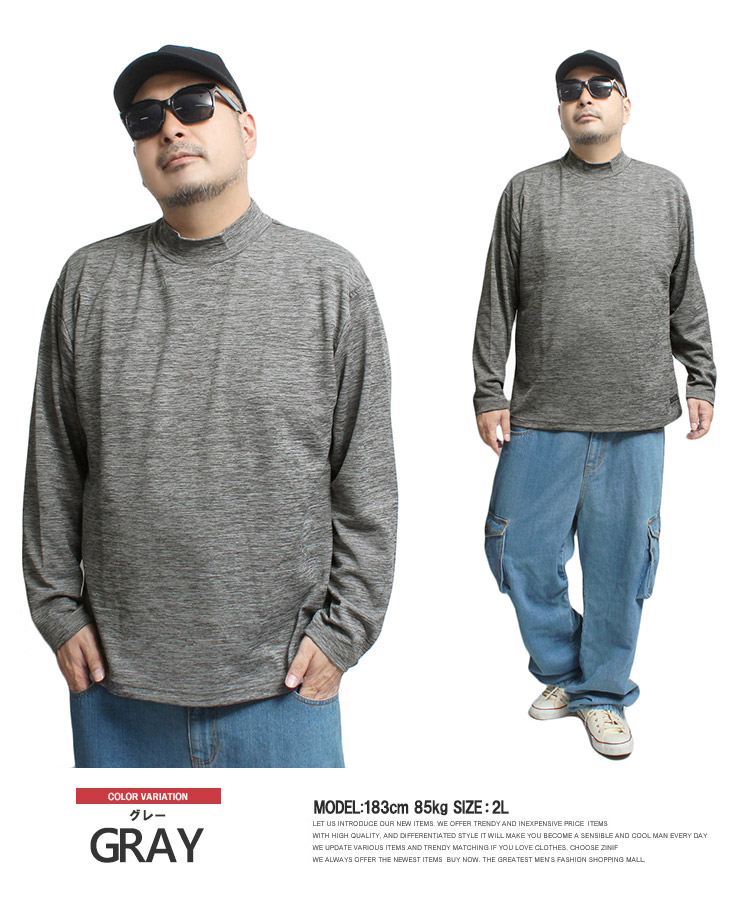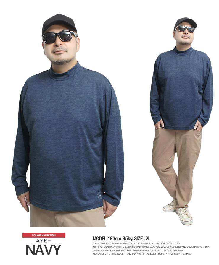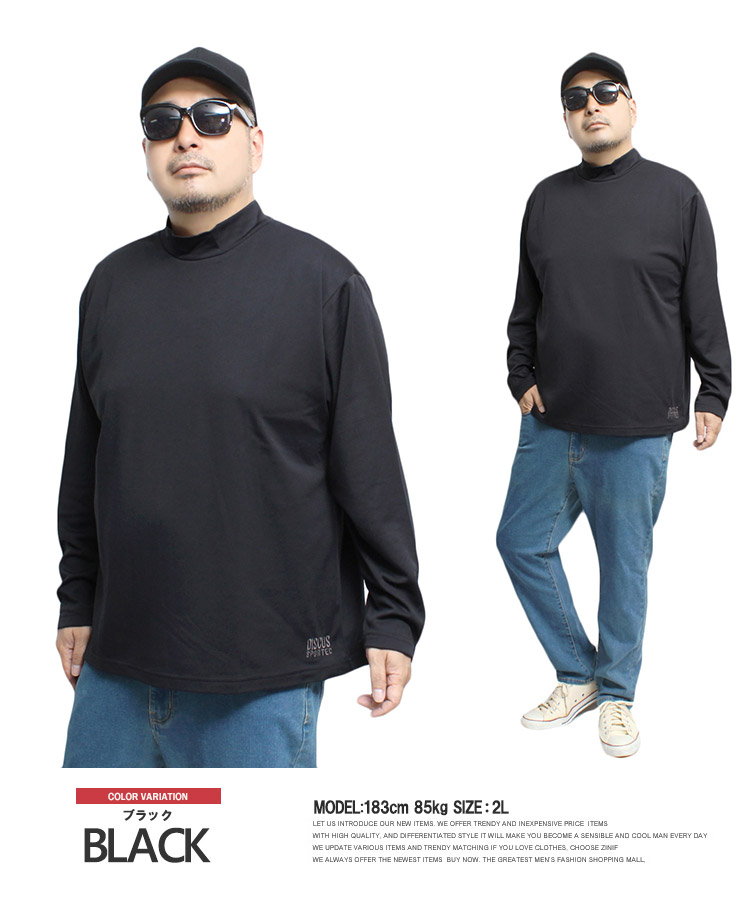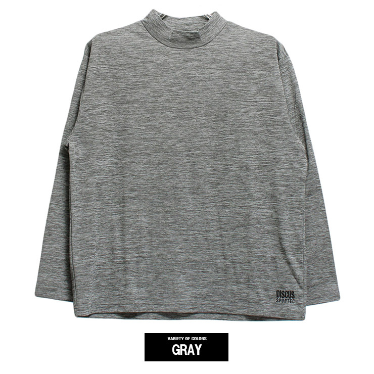 【大きいサイズ】DISCUS(ディスカス) ハイネック 長袖 Tシャツ メンズ 大きいサイズ 裏起毛 メランジスムース カットソー モックネック トップス 防寒 暖かい スポーツ〇
