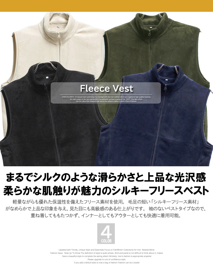 【大きいサイズ】フリース ベスト 大きいサイズ シルキーフリース やわらか ジップアップ スタンド ジャケット ブルゾン 防寒 暖かい あったか 無地 保温 アウター ボア 重ね着〇