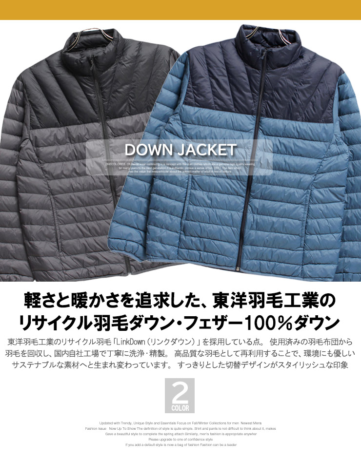 【大きいサイズ】ダウンジャケット メンズ 大きいサイズ 撥水加工 ナイロン ジップアップ スタンド ブルゾン ライトダウン アウター 防寒 暖かい 軽量 保温 あったか☆