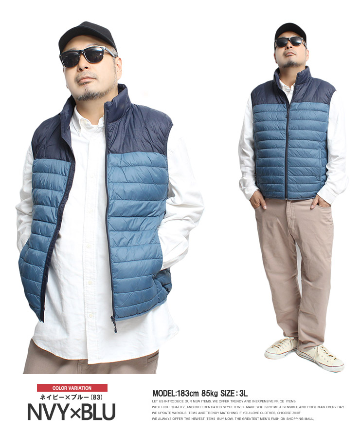 【大きいサイズ】ダウンベスト メンズ 大きいサイズ 撥水加工 ナイロン ジップアップ スタンド ブルゾン ワークマン プラス ダウンジャケット アウター 軽量 保温 防寒 暖かい☆