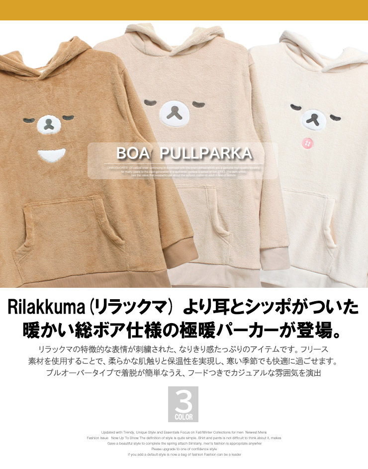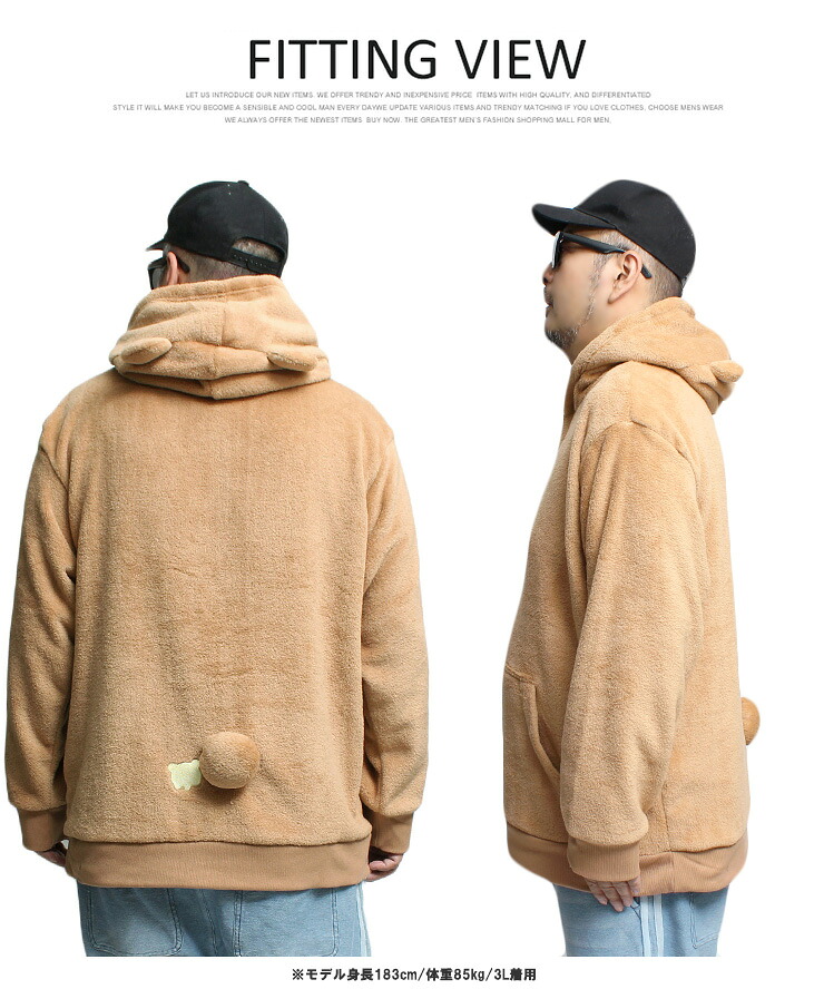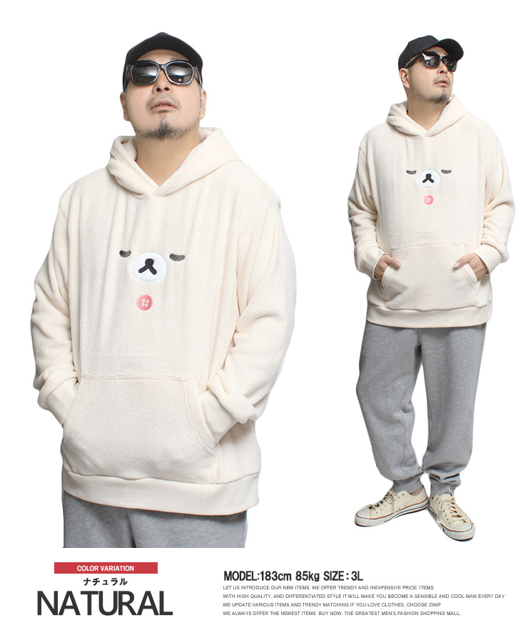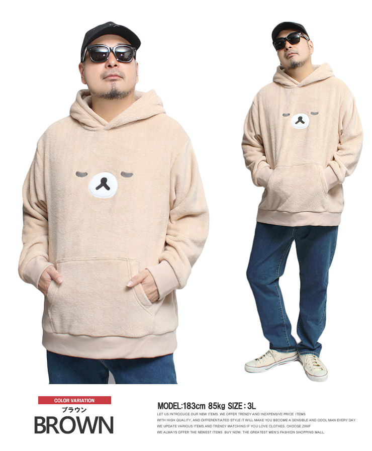 【大きいサイズ】Rilakkuma(リラックマ) パーカー メンズ 大きいサイズ プルオーバー なりきり ボア フリース ワークマン プラス〇