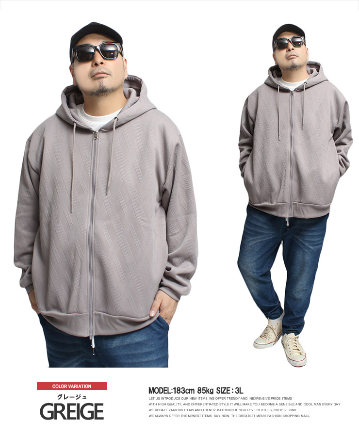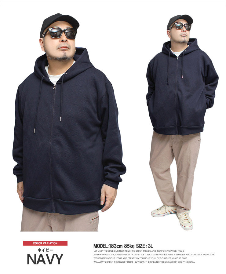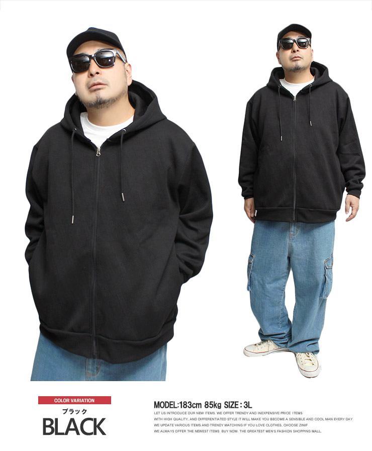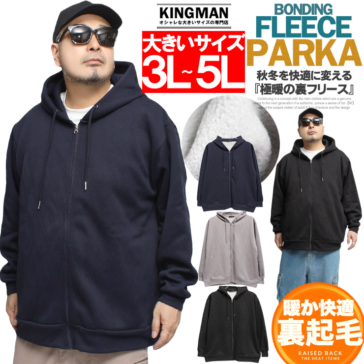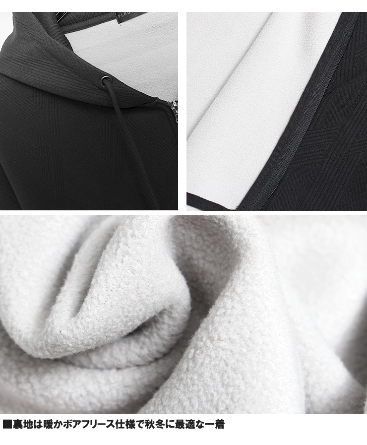 【大きいサイズ】フクレ ジャガード パーカー メンズ 大きいサイズ 裏フリース ボンディング ジップアップ スウェット 裏起毛 防寒 暖かい あったか 保温性 トップス スエット〇