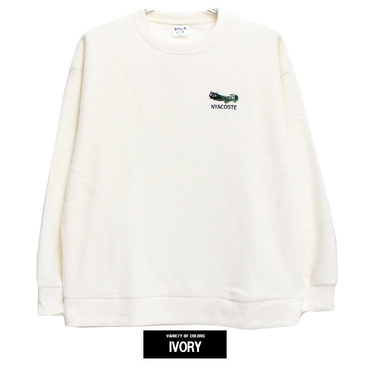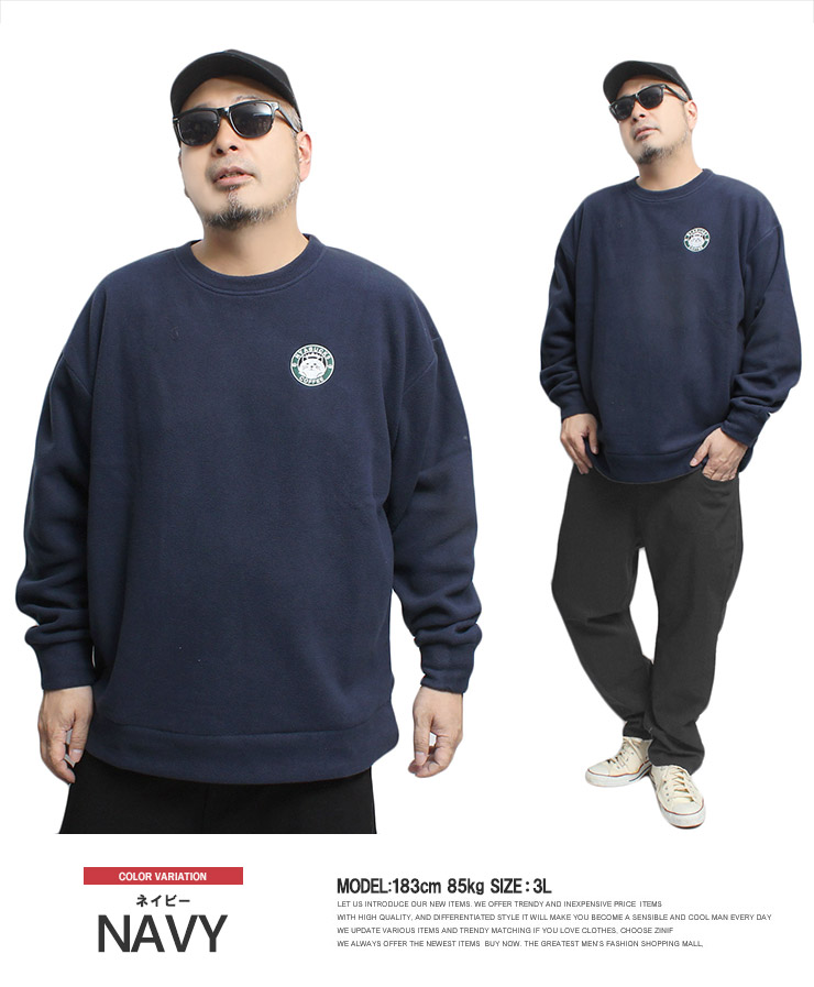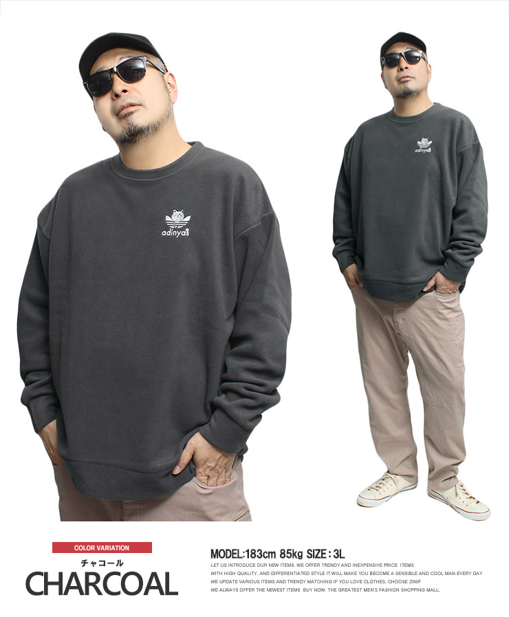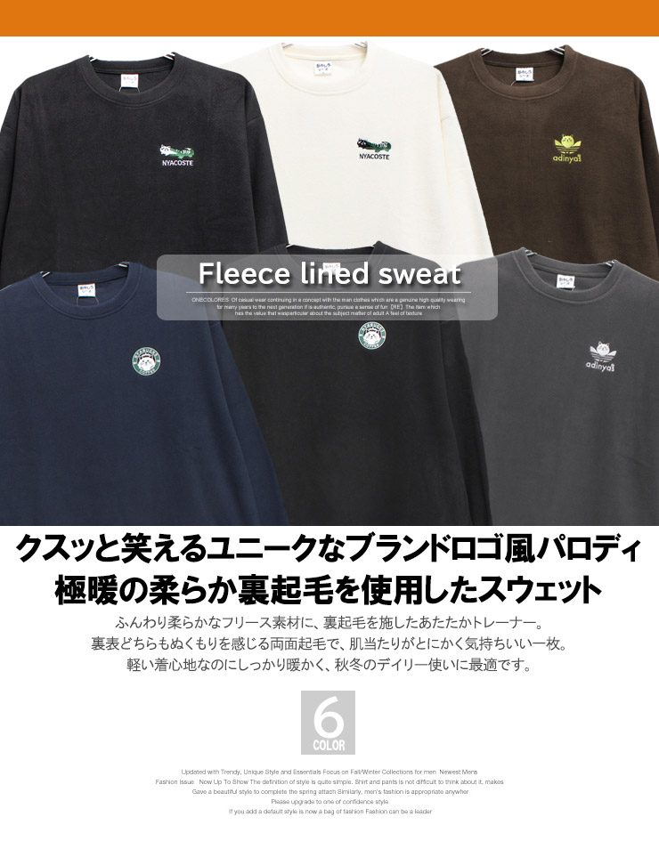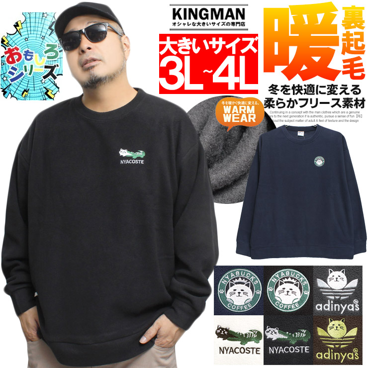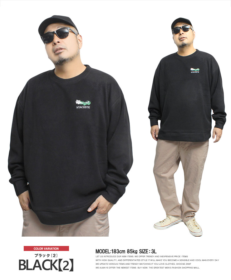 【大きいサイズ】フリース トレーナー メンズ 大きいサイズ 裏起毛 猫 パロディ 刺繍 プリント クルーネック スウェット メンズブルゾン おもしろ かわいい ブランド ネコ〇