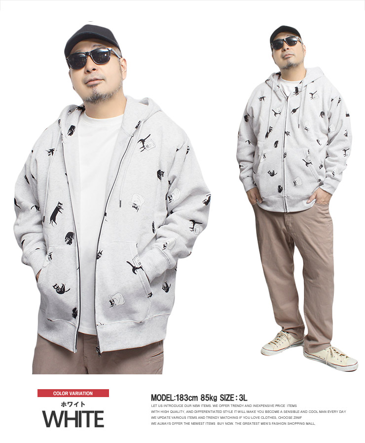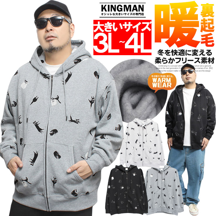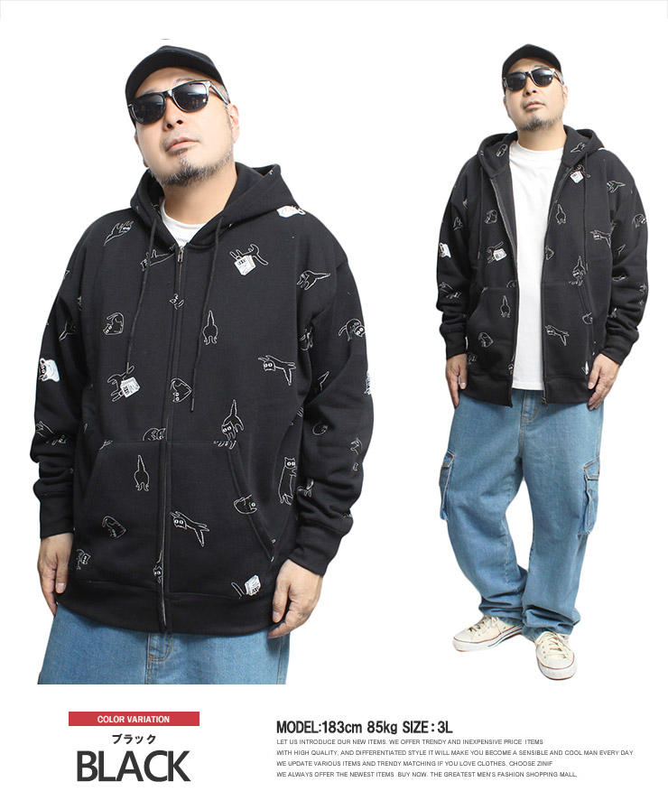 【大きいサイズ】パーカー メンズ 冬 裏起毛 スウェット 大きいサイズ おもしろ 総柄 おしゃれ オーバーサイズ ジップアップ フルジップ かっこいい ブランド 着やせ〇
