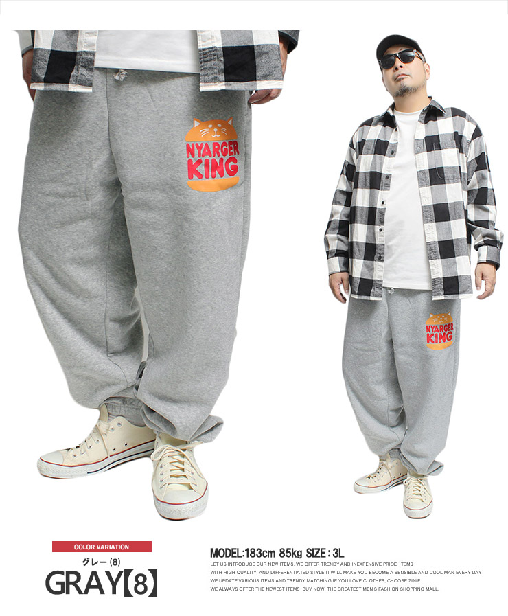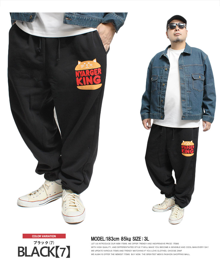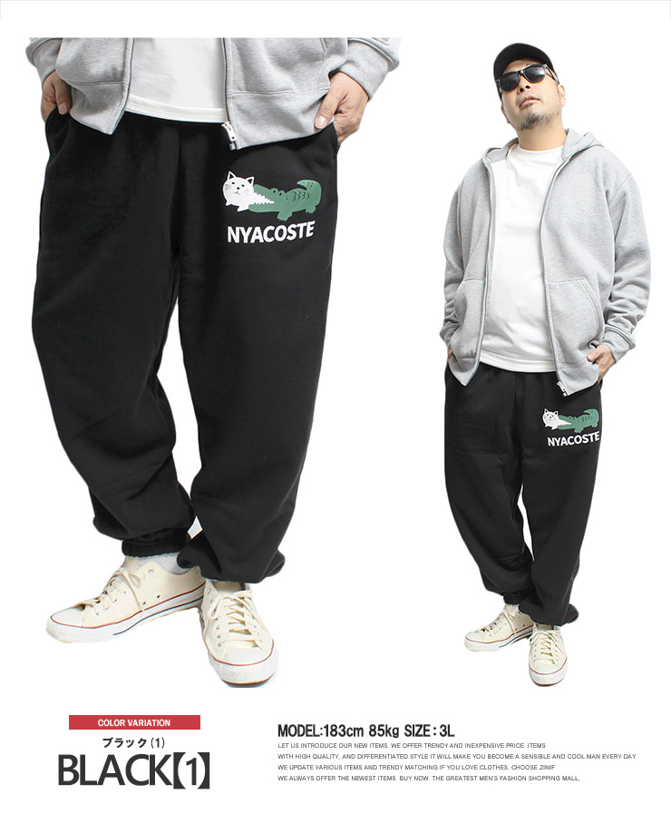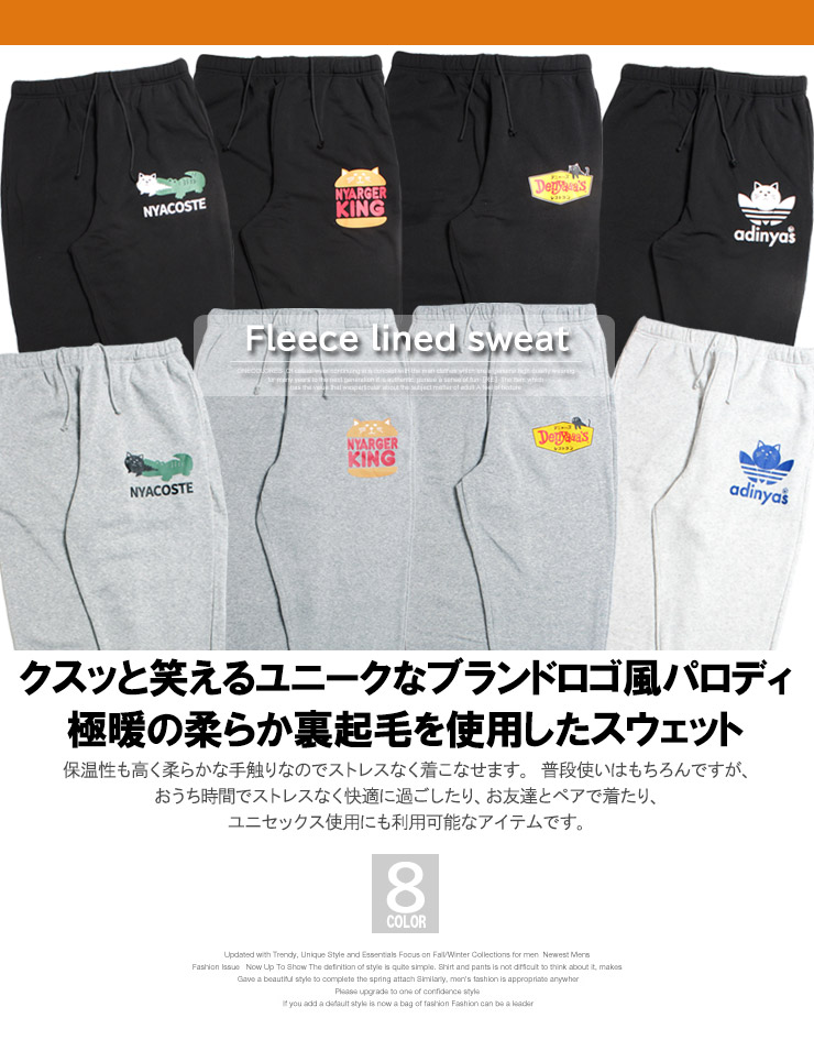 【大きいサイズ】スウェットパンツ メンズ 冬 裏起毛 大きいサイズ ワイド 3L ゆったり 厚手 おもしろ 猫 企業ロゴ パロディーネコ にゃんこ 暖かい 暖パン 暖かい あったか●