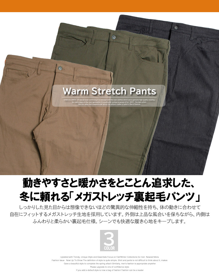 【大きいサイズ】裏起毛パンツ 裏フリース 裏ボア チノパンツ メンズ 大きいサイズ メガストレッチ 防寒 防風 5ポケット 暖パン あったか 暖かい イージーパンツ●