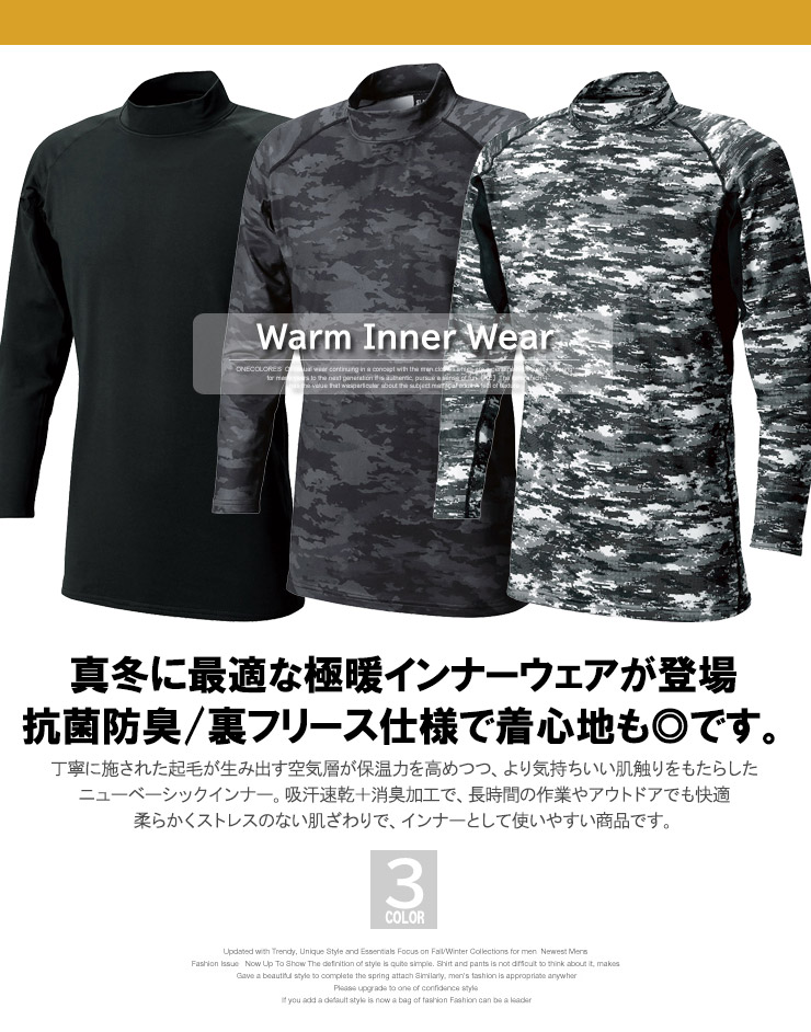 【大きいサイズ】あったかインナー 防寒 消臭 コンプレッション インナー ウェア メンズ 大きいサイズ タートルネック モックネック 裏起毛 ストレッチ 吸汗速乾 ウォーム〇