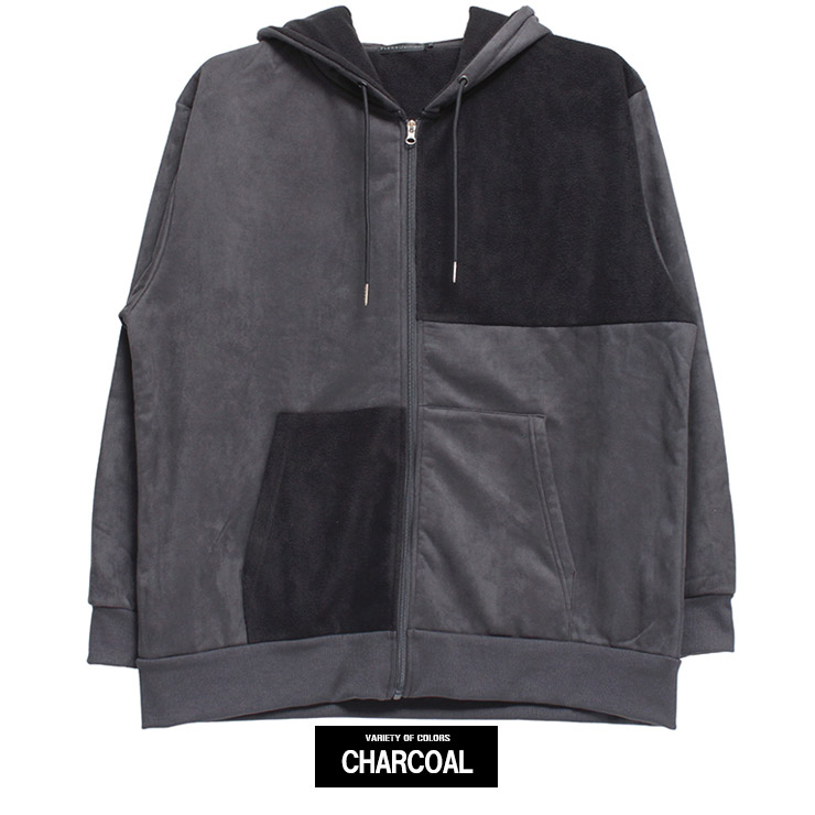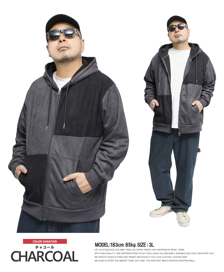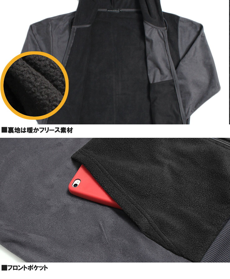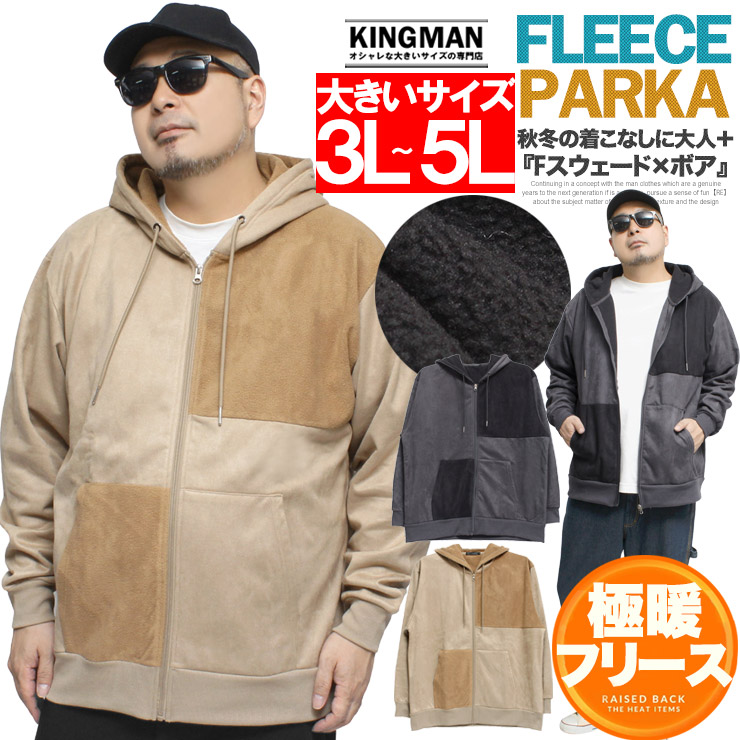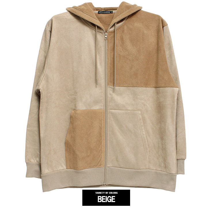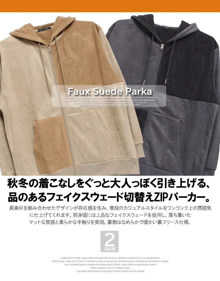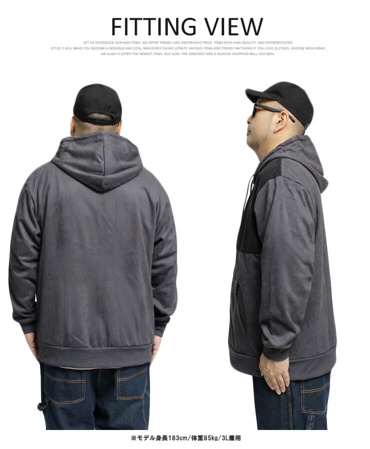 【大きいサイズ】フェイクスウェード パーカー メンズ 大きいサイズ 切替 デザイン 裏フリース ジップアップ スウェット 裏起毛 防寒 暖かい あったか トップス フード〇