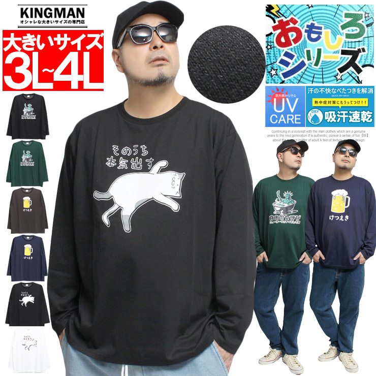 【大きいサイズ】おもしろ 長袖 Tシャツ メンズ プリント UVカット 吸水速乾 クルーネック カットソーキャラクター グッズ おもしろtシャツ 部屋着 ルームウェア