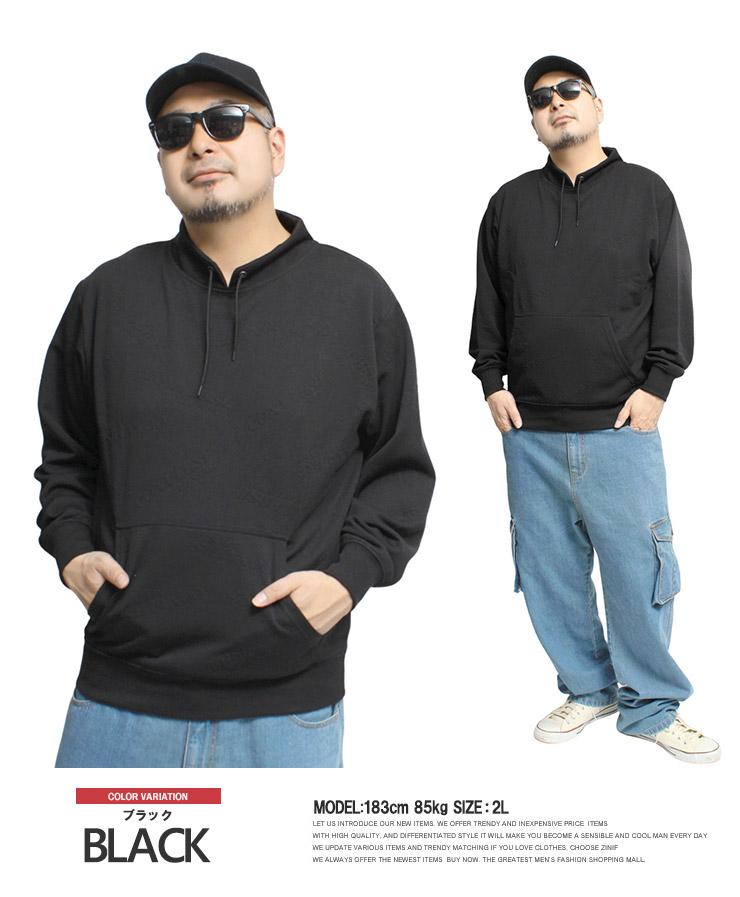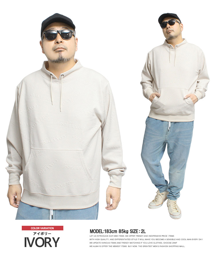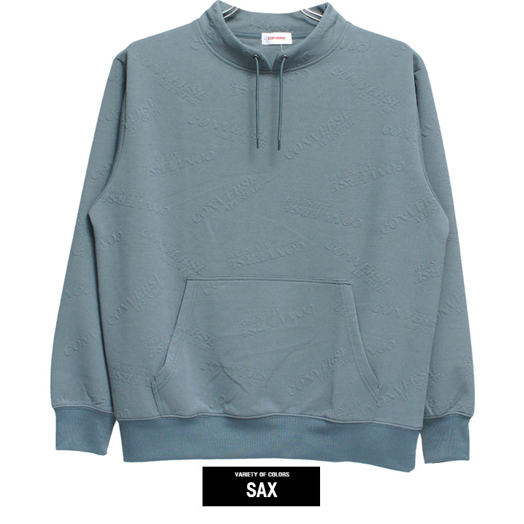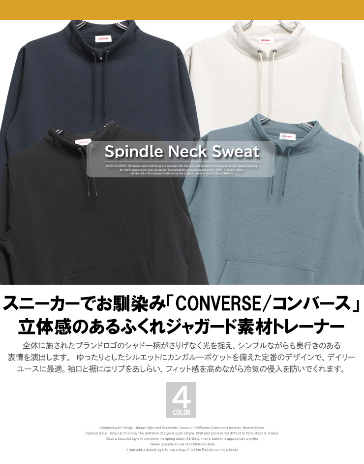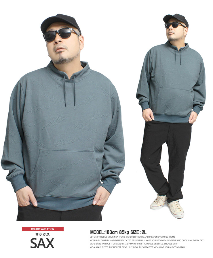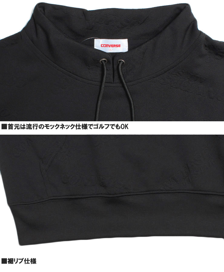 【大きいサイズ】コンバース CONVERSE モックネック トレーナー メンズ ふくれジャガード 総柄 スピンドルネック ロゴ プルオーバー スウェット