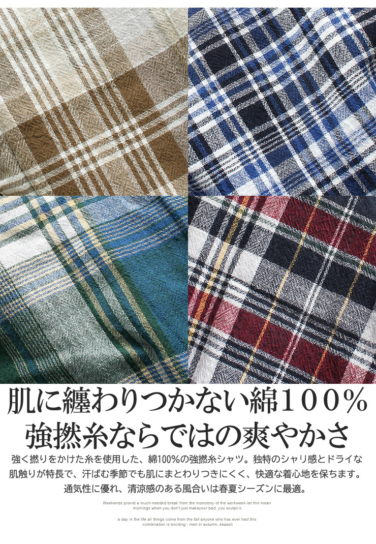 さらっとした肌触りと、きちんと見えを両立した強撚糸チェックシャツ。