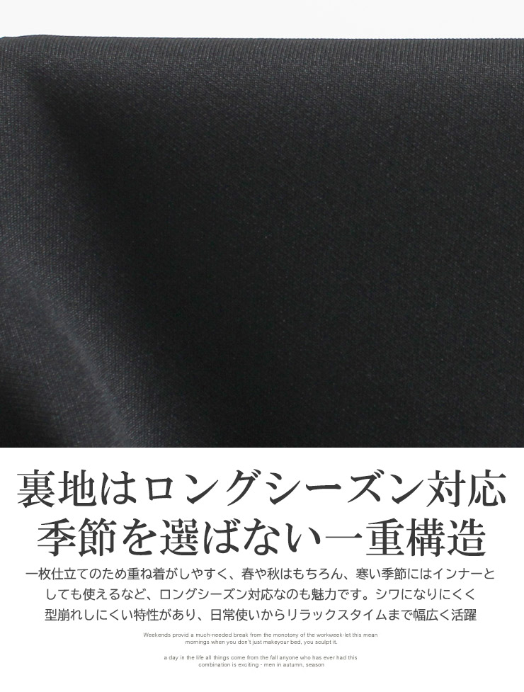 季節を選ばずロングシーズン活躍し、春秋はこれ一枚、冬はアウターのインナーとしても着回し可能です。