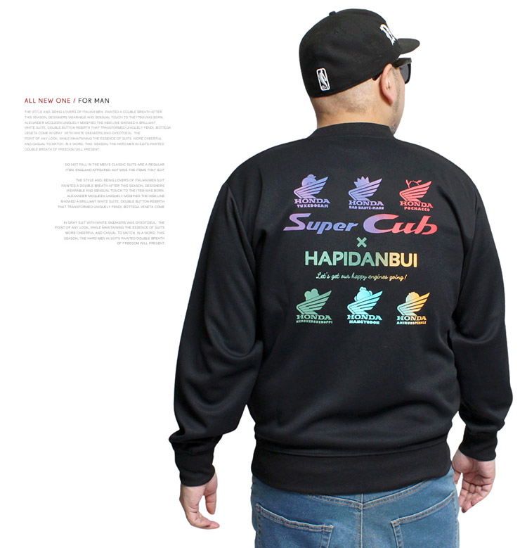 バックには「Super Cub × HAPIDANBUI」のグラフィックを大胆に配置し、後ろ姿までしっかり主役級の仕上がりに。
