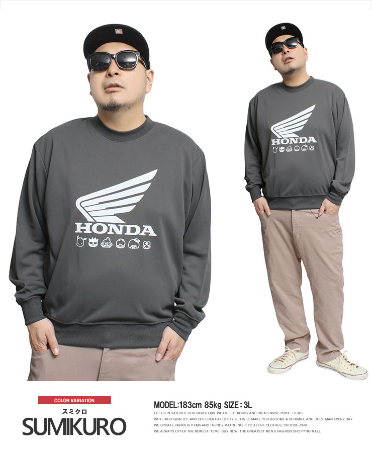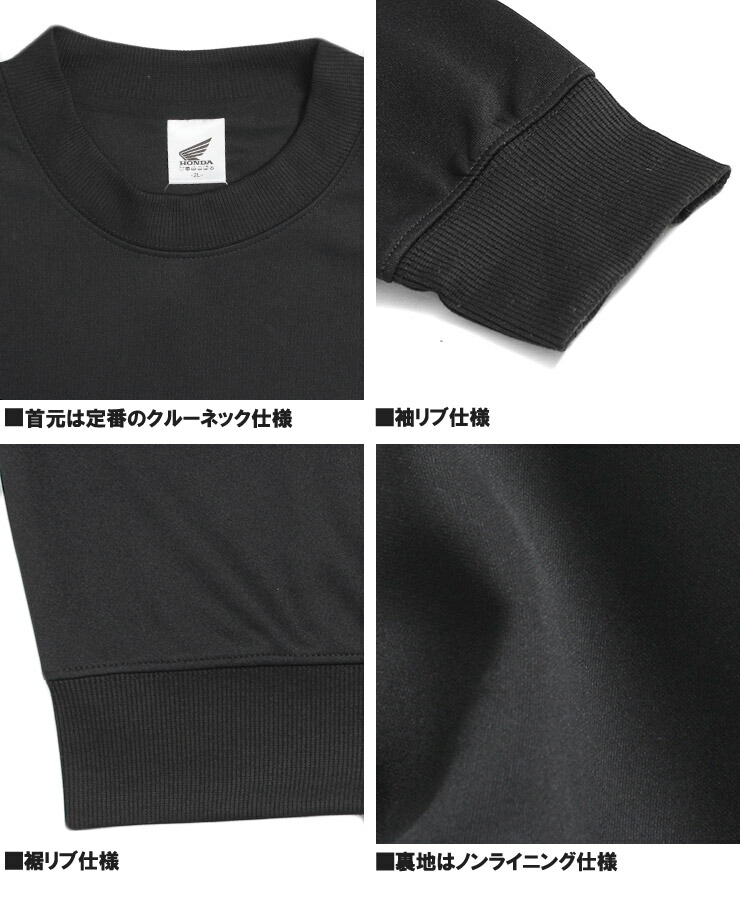 フロントは胸元のワンポイントプリントと、存在感抜群のHONDAロゴプリントデザインを採用。