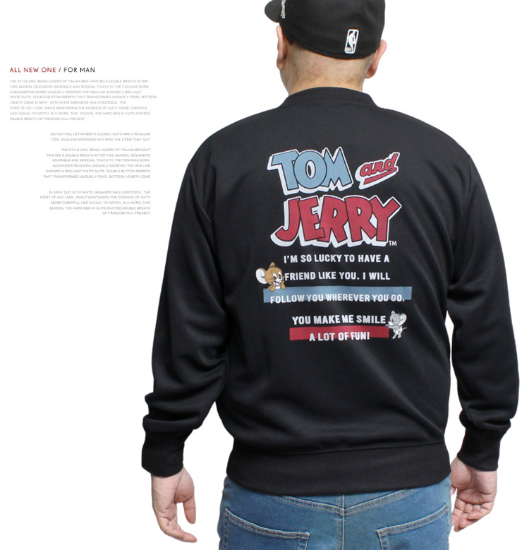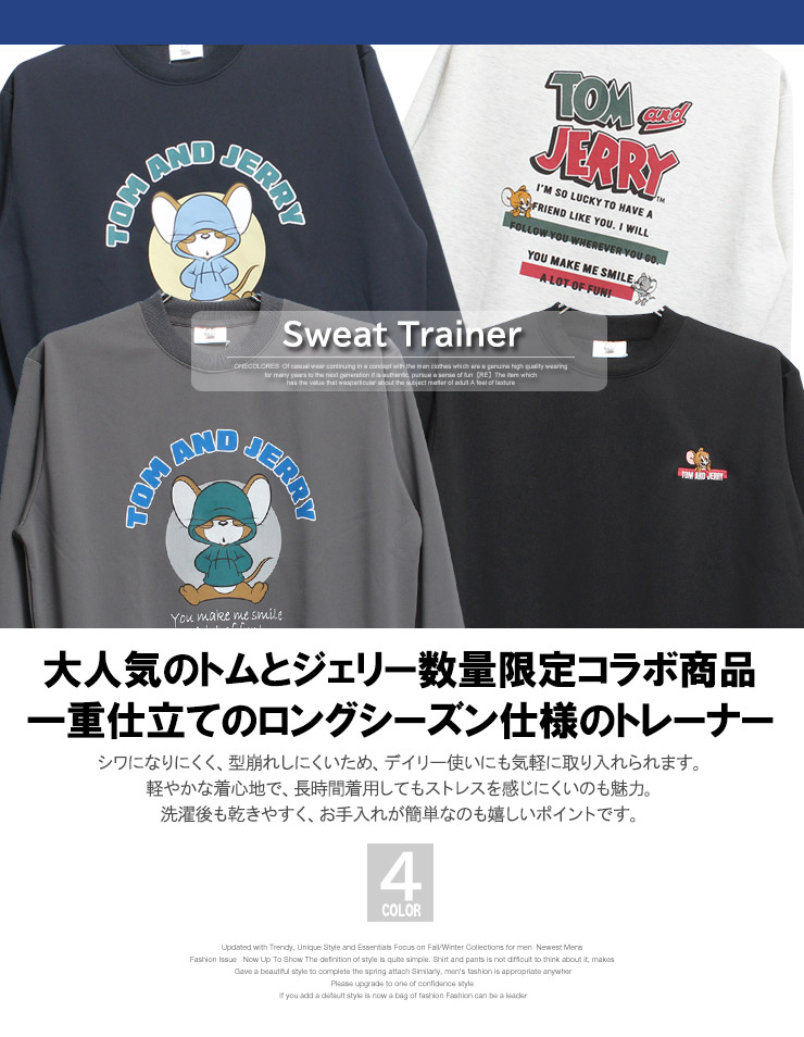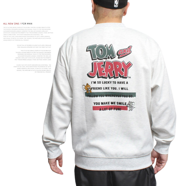 3秒で映える ロゴとキャラの存在感。大人気キャラクター「TOM AND JERRY」をデザインに落とし込んだ、数量感のあるコラボ風プリントトレーナー。