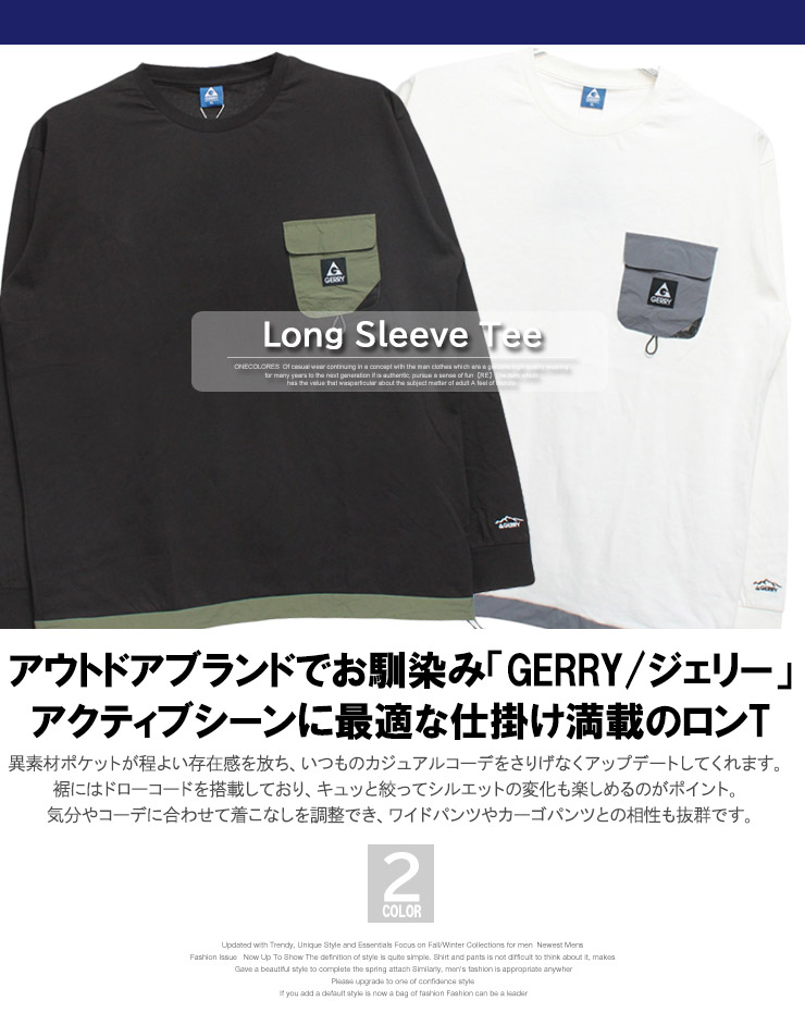 GERRY ジェリー ロンT ロングTシャツ 長袖Tシャツ 長袖 ロングスリーブ ロングスリーブTシャツ カットソー メンズ トップス メンズトップス メンズカットソー Tシャツ ポケT ポケットT ポケットロンT 胸ポケット ポケット付き フラップポケット ナイロンポケット ナイロン切替 異素材 別布 切替 切り替え ワンポイント ロゴ 刺繍 ブランド ロゴ刺繍 胸刺繍 シンプル 無地 きれいめ カジュアル 大人カジュアル アメカジ ストリート アウトドア アウトドアミックス キャンプ 釣り フェス レジャー トラベル 旅行 公園 散歩 ワンマイルウェア デイリー 普段着 部屋着 ルームウェア 春 秋 冬 ロングシーズン 重ね着 レイヤード インナー 1枚着 羽織り シャツジャケット風 ラフ こなれ ゆったり ルーズ オーバーサイズ ビッグシルエット ワイドシルエット 体型カバー 大きめサイズ 大きいサイズ キングサイズ ビッグサイズ 2L 3L 4L 5L LL XL XXL XXXL 4XL 5XL 綿 綿100 コットン コットン100 天竺 天竺素材 20番手 20番 OE天竺 OE糸 OE素材 しっかり生地 丈夫 タフ デイリーに強い 着心地 肌触り さらさら 快適 通気性 吸汗 吸湿 春服 秋服 冬服 シーズンレス 裾ドローコード ドローコード 絞れる 裾絞り シルエット調整 ストッパー アジャスター 2WAY 変形 ルーズフィット スタイリング自在 デニムに合う ジーンズに合う カーゴに合う ワークパンツに合う ジョガーに合う チノパンに合う スラックスに合う レイヤードコーデ ストリートコーデ アウトドアコーデ カジュアルコーデ 休日コーデ パパコーデ 大人 メンズファッション 男性 紳士 10代 20代 30代 40代 50代 60代 通勤 通学 在宅 リモート 旅行服 キャンプ服 フェス服 春コーデ 秋コーデ 冬コーデ ブラック 黒 ホワイト 白 カーキ オリーブ グリーン ネイビー 紺 グレー ベージュ 配色 配色切替 バイカラー ツートン おしゃれ オシャレ かっこいい 人気 定番 新作 ギフト プレゼント 誕生日 父の日 クリスマス 敬老の日
