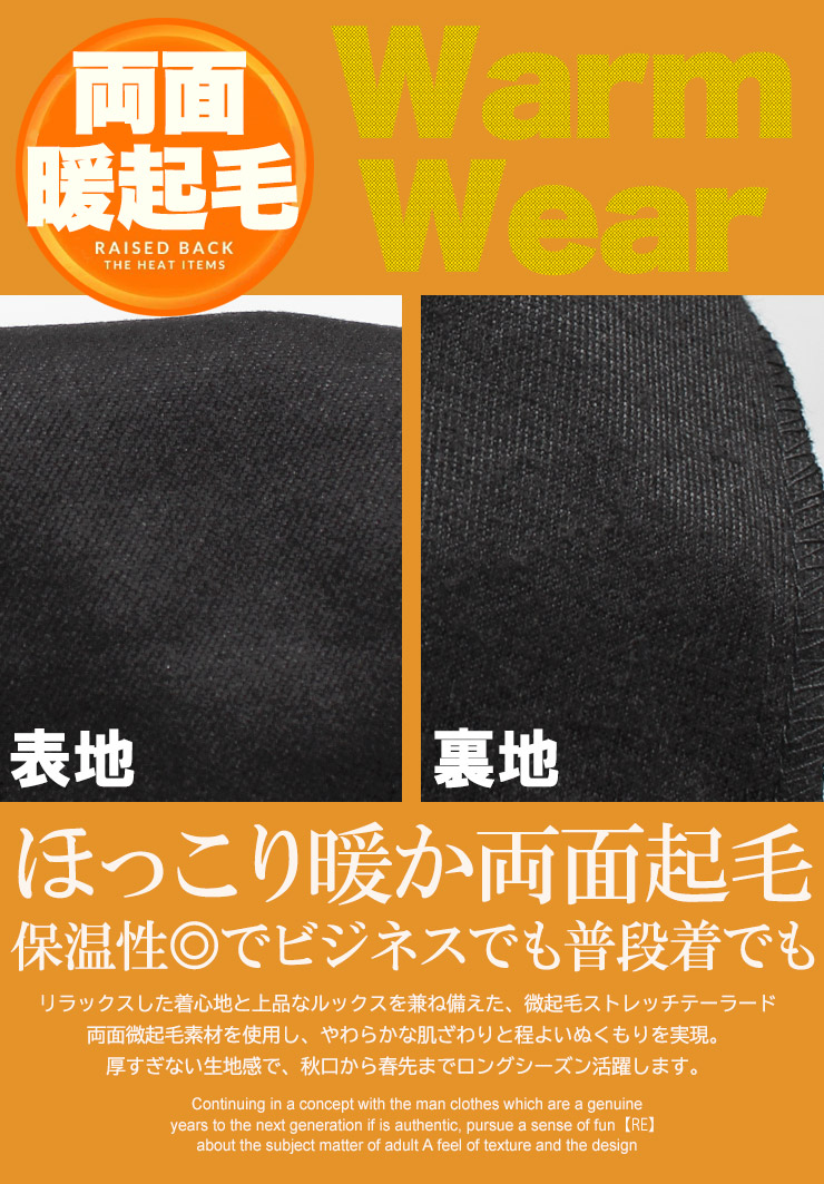 表裏の両面に微起毛加工を施すことで、ふんわりとしたあたたかみのある風合いと、やさしい肌触りを両立しています。